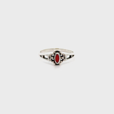 Bague en argent sterling avec une pierre ovale sertie au centre. Les décorations sur les côtés ressemblent à un petit nœud, ajoutant une touche simple et mignonne au look.