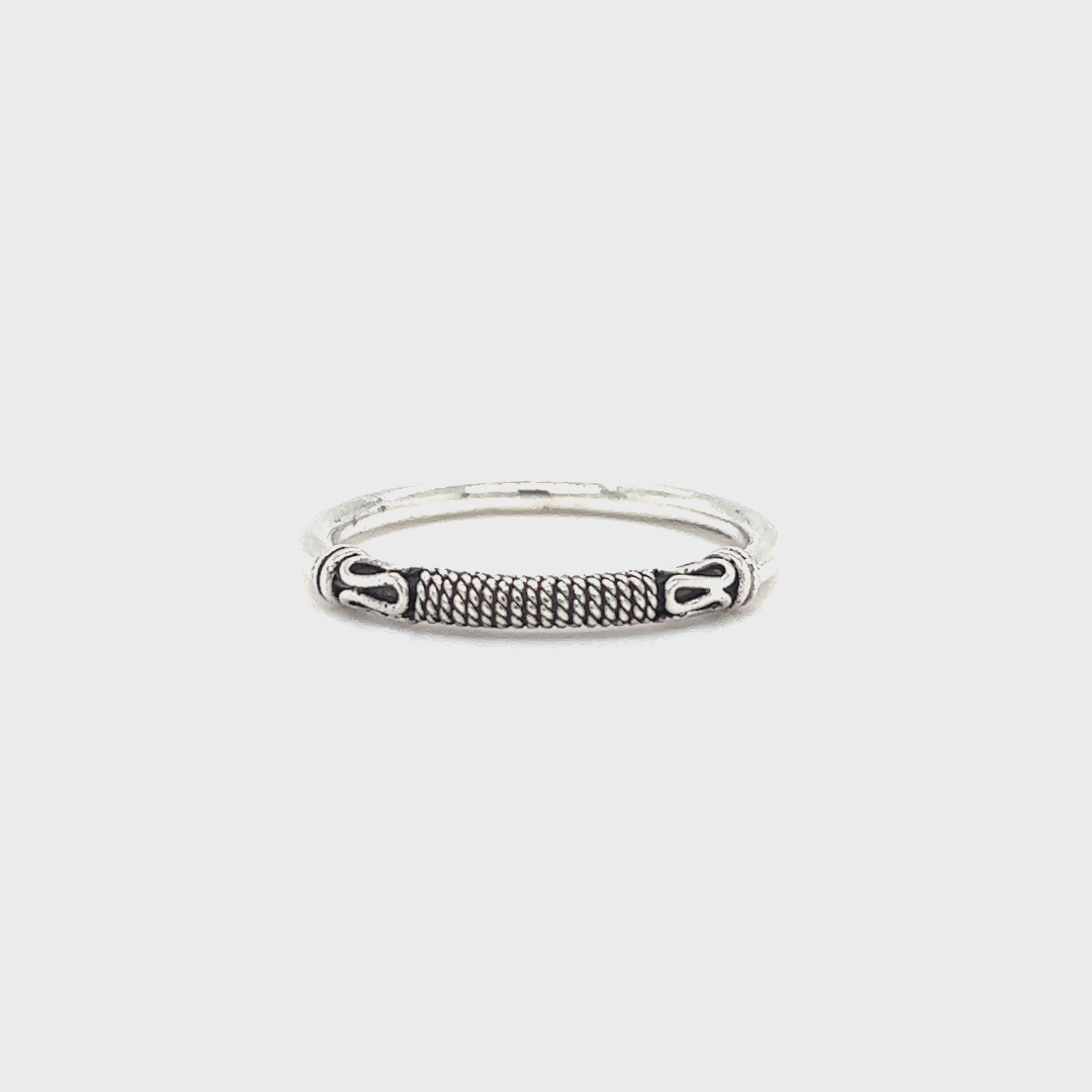 Cette délicate bague Bali est le summum de la polyvalence. Avec son design délicat mettant en valeur des accents traditionnels de style balinais et un motif de corde simple mais captivant sur la moitié avant, cette bague décontractée offre une fusion parfaite d'élégance et de charme bohème. L'anneau mince et l'ambiance rustique raffinée rendent ce magnifique anneau parfait à empiler ou à porter comme anneau de pouce.
