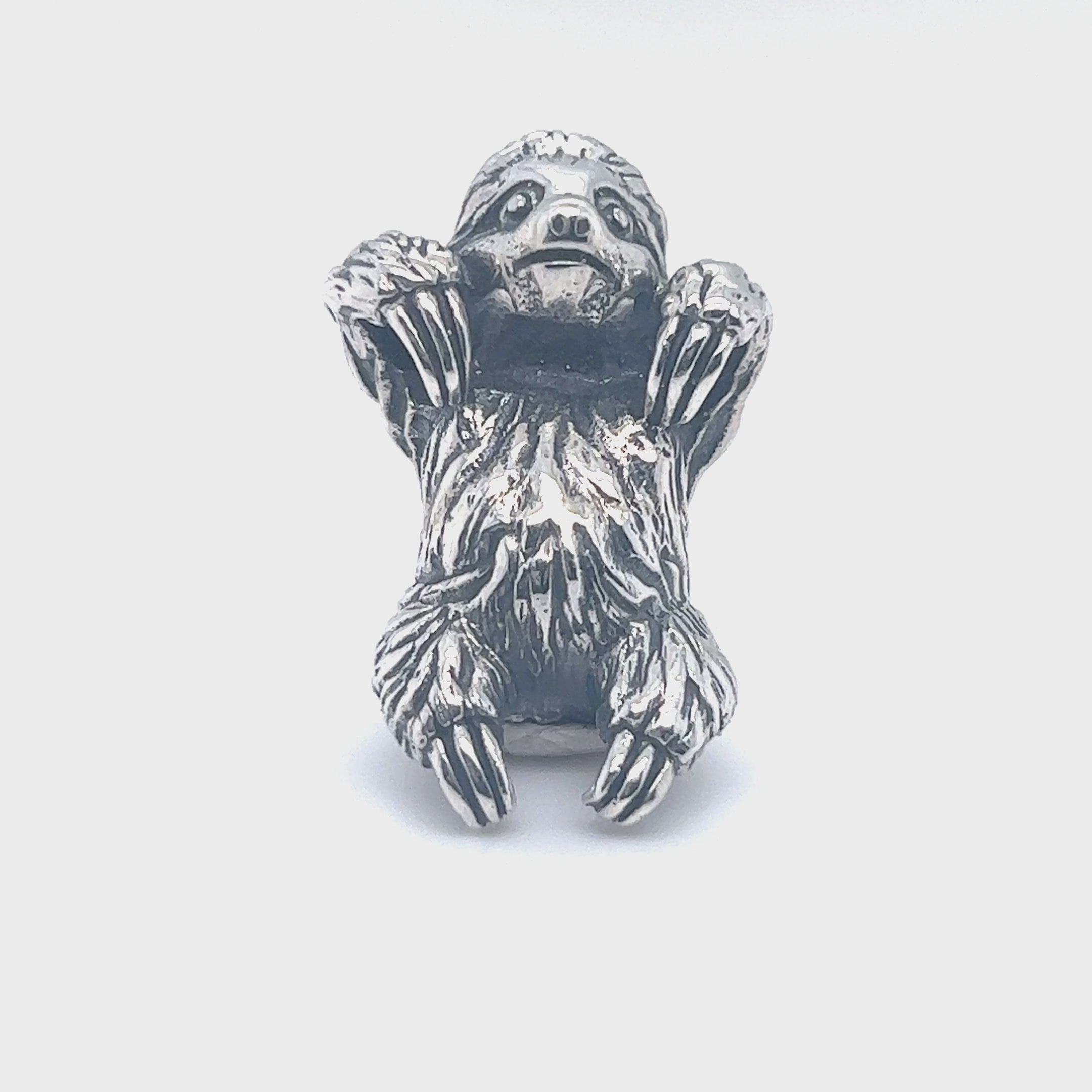 An artisan-crafted Super Silver sloth pendant on a white background, showcasing impeccable craftsmanship.