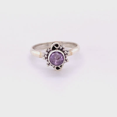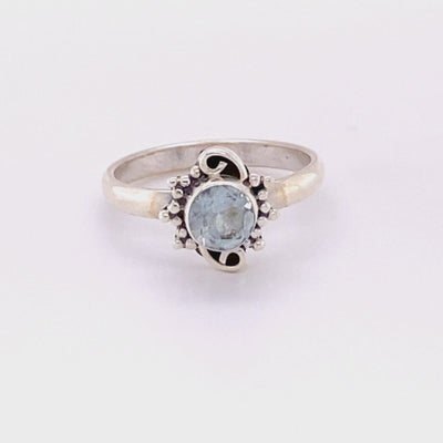 Petite bague ronde en pierres précieuses avec bordure en perles et tourbillon