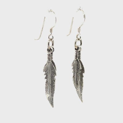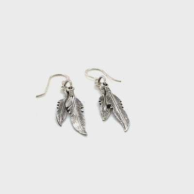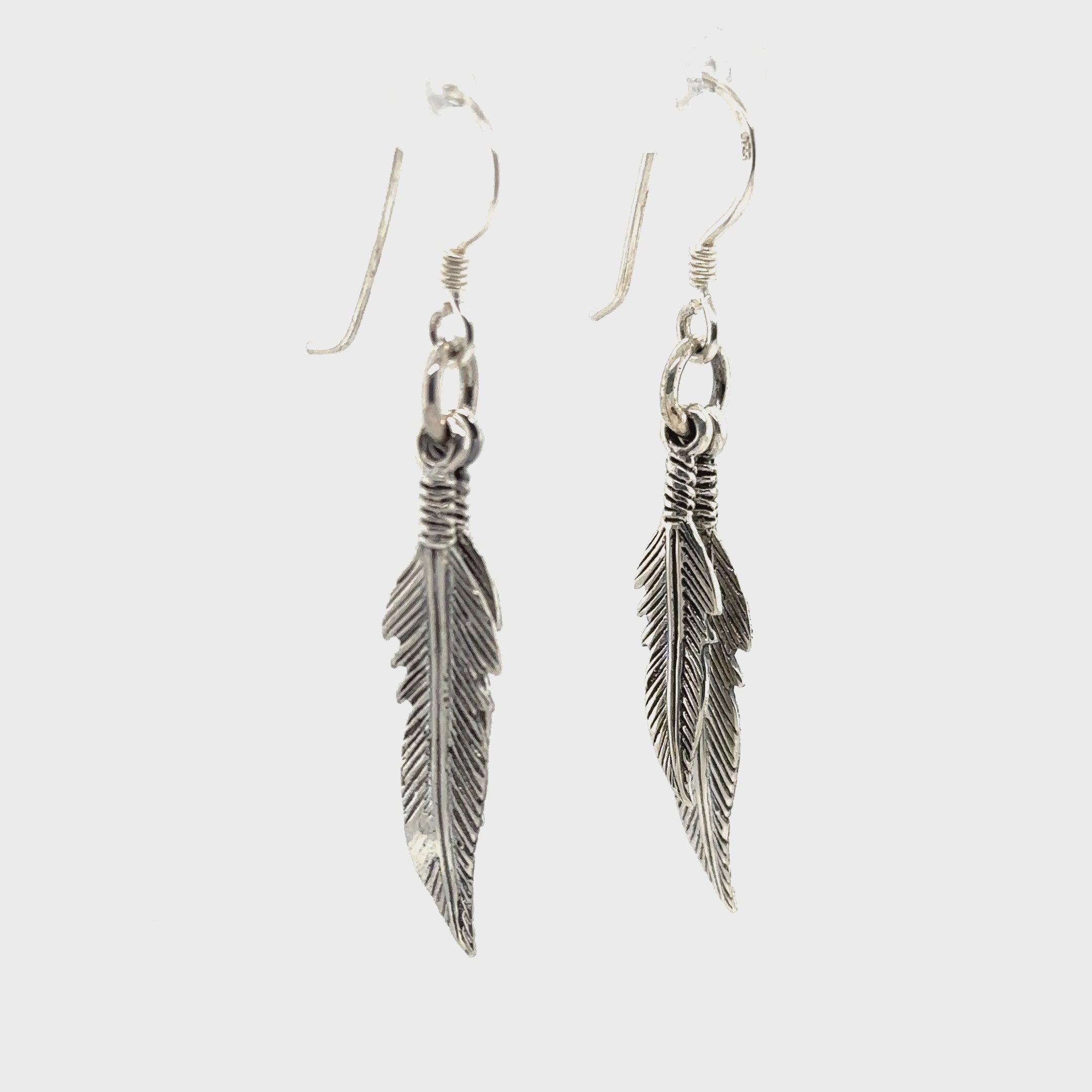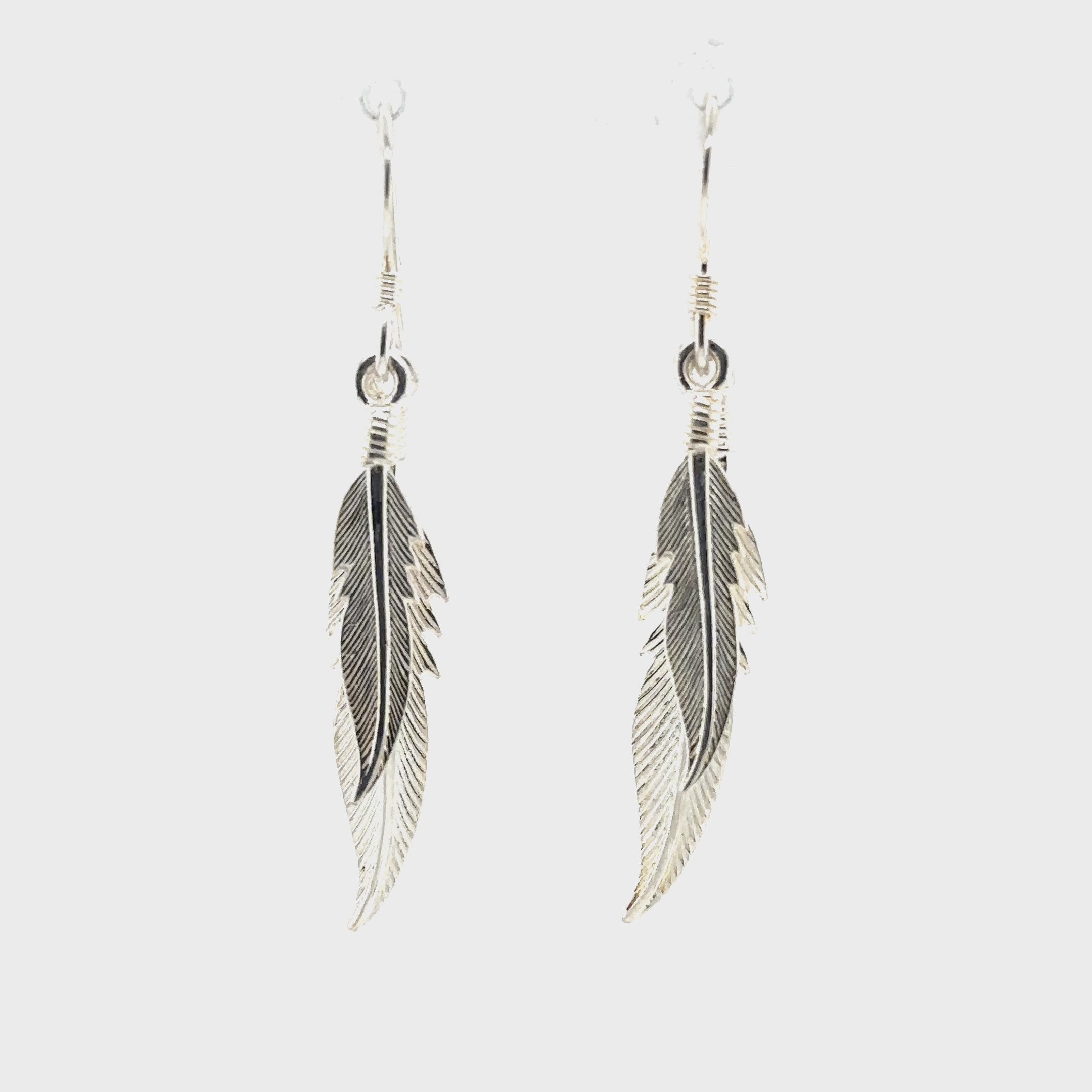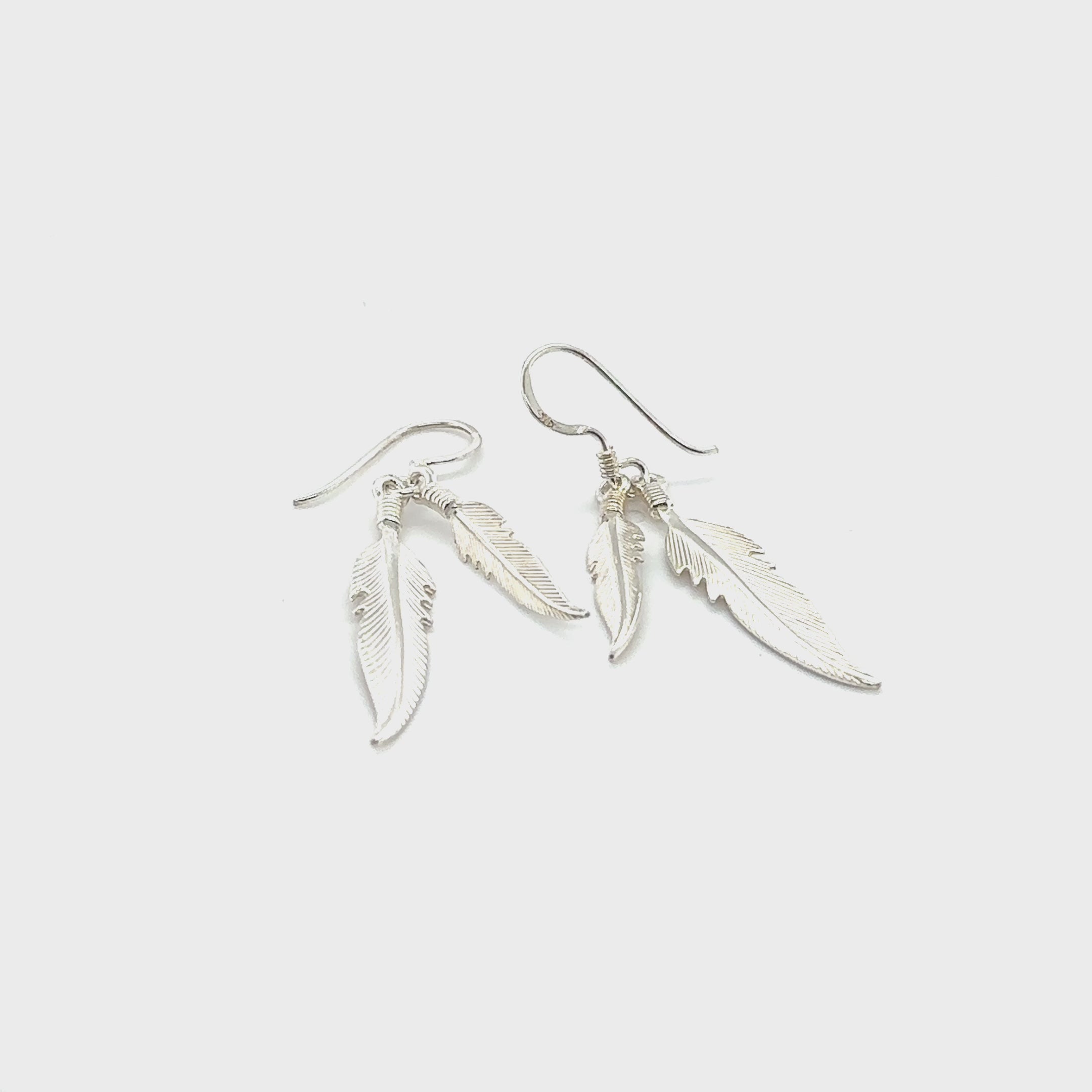 Boucles d'oreilles en argent sterling avec deux plumes accrochées à un crochet français. Idéal pour tous les jours.
