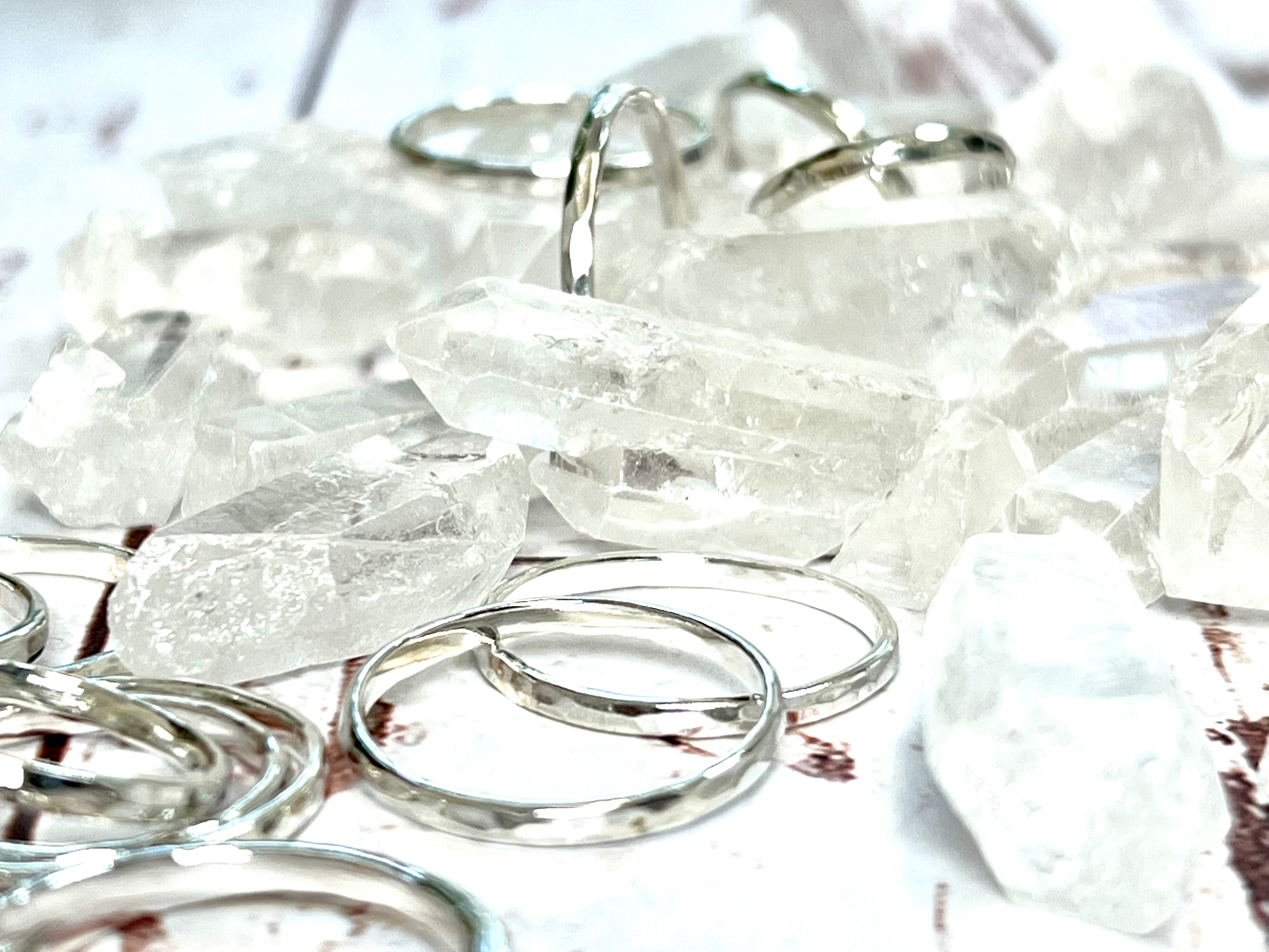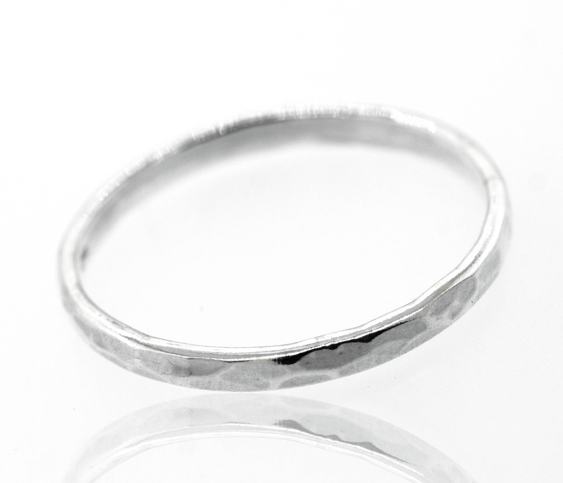The ideal mix of simple elegance with a touch of sparkle, this versatile hammered band is a classic look with a modern touch. This brilliant ring can be worn on its own for a clean minimalist look, stacked with any of our other fabulous rings, worn as a midi ring, or toe ring!