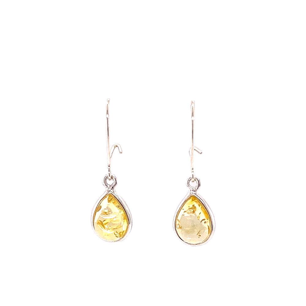 Treat yourself to these dainty sparkling Baltic amber teardrop earrings! These delightful dangly earrings are a brilliant minimalist style featuring a secure clasp hook that can see you through the busiest of days. Now in two radiant colors! Pair the bright lemon with the flowing florals of Spring, or wear the rich dark green amber for an enchanting Fall outfit. Why not get both and have an effortless go-to piece year-round!