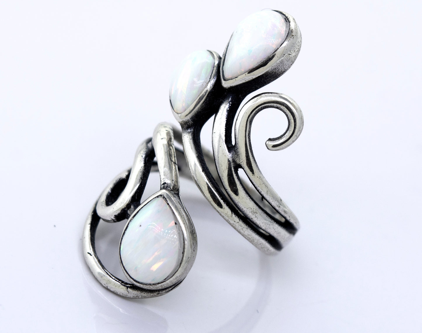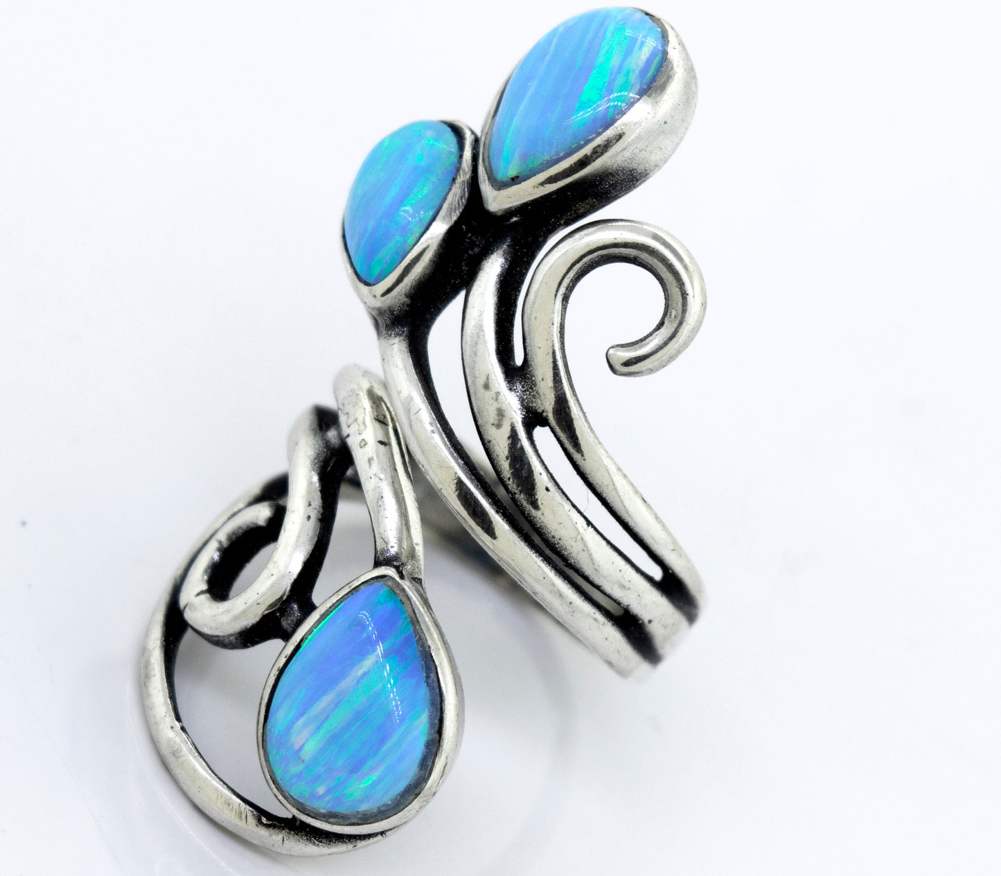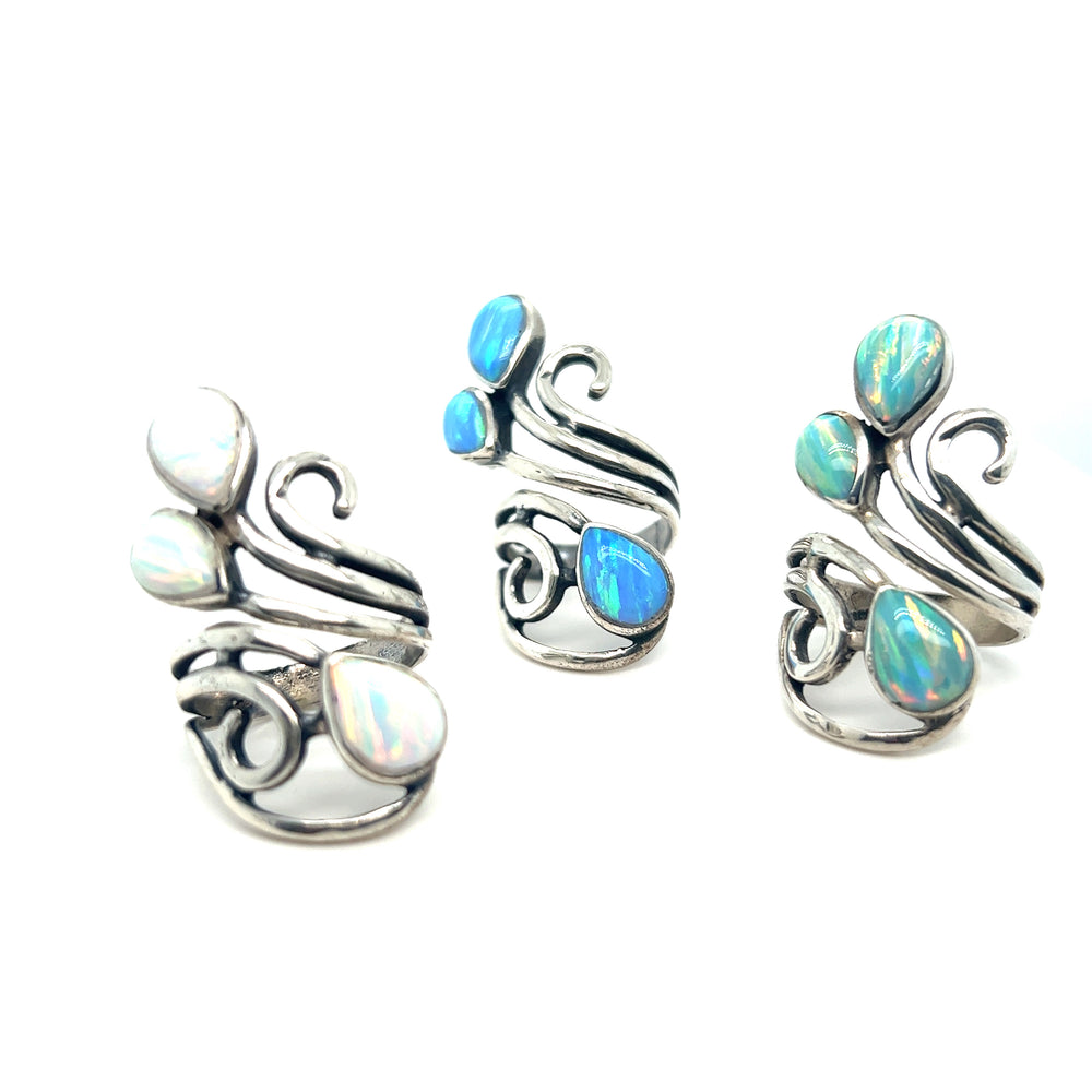 A stunning statement ring glistens with its opal stone's soft subtle glimmer. This ring embraces your finger in a captivating dance of grace and wonder. Choose from the soft glow of the white opal, the brilliant ocean blue, or the dreamy seafoam green. You will surely be amazed by its beauty, whichever color you choose.