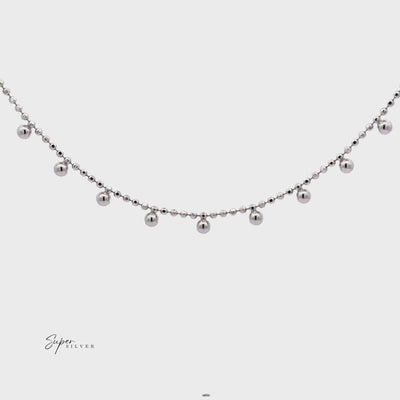This sleek necklace features a fine beaded chain adorned with tiny silver drops that catch the light in all the right ways. Its minimalist silhouette meets bohemian soul, creating a look that’s both curated and free-spirited. Finished in luminous rhodium, it’s the kind of piece that feels runway-ready, yet is made for real life. Layer it up or let it shine solo—either way, it’s a vibe.
