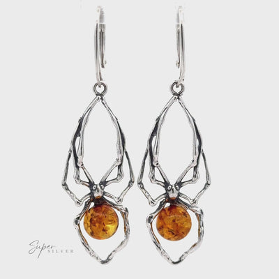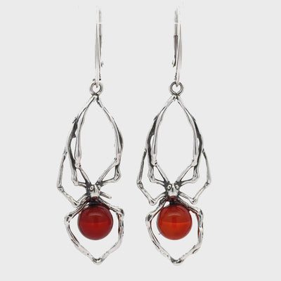 These elegantly spooky spider earrings glow with Baltic amber charm. With their slender and long frame, these eerie weevers captivate the most mysterious of hearts. Spiders symbolize knowledge and wisdom, spinning out our fates and catching our dreams in their complicated webs. Combined with the buttery cognac, amber orbs harness the healing power by absorbing negative energy away from the wearer and instilling a growing sense of self-empowerment. So let these creepy-crawly friends of witches clamber into your heart and onto your ears!
