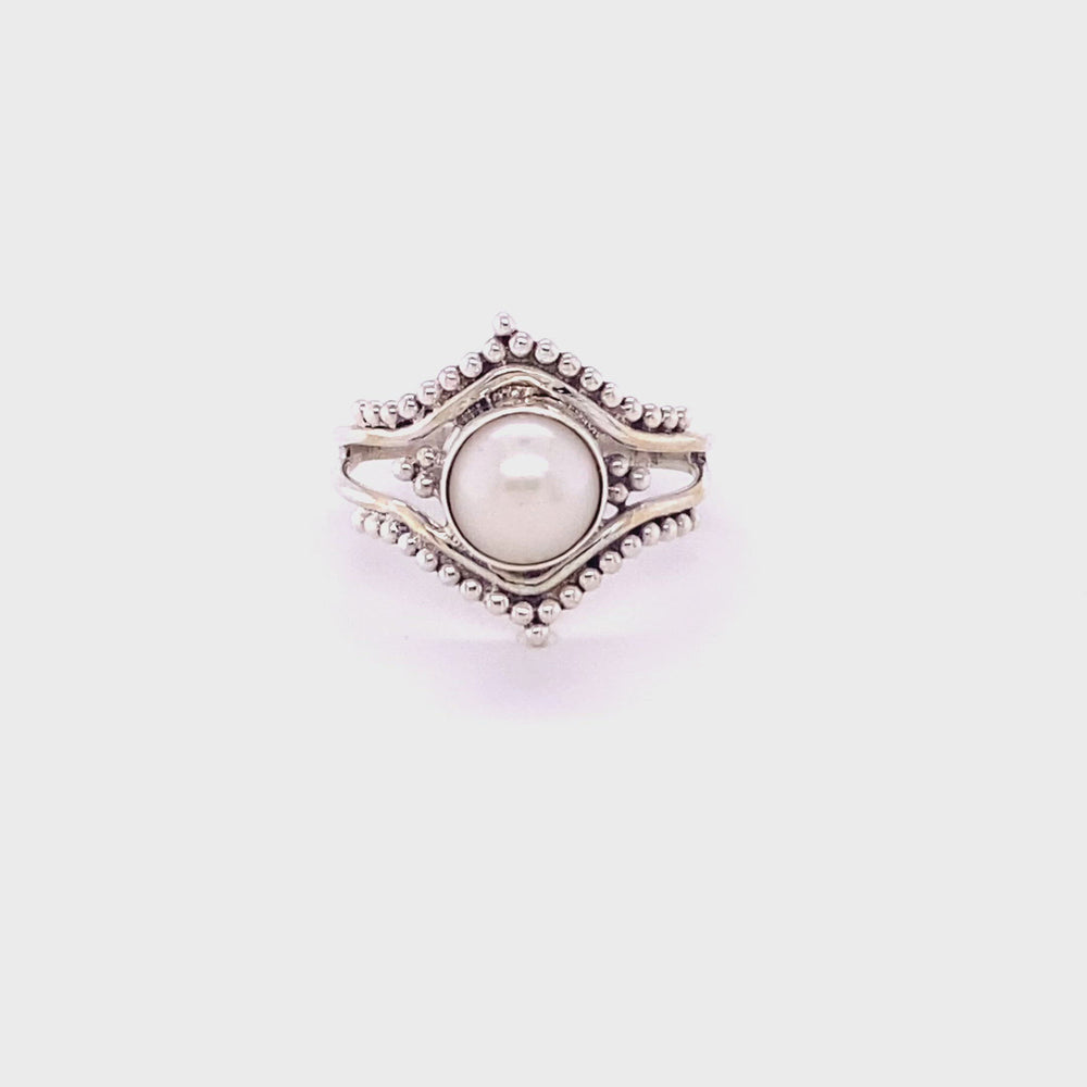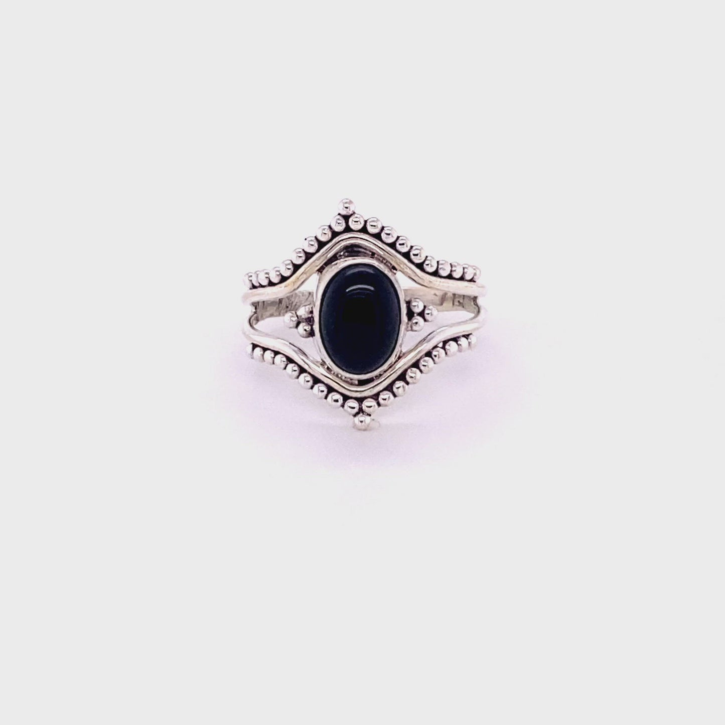 Double Chevron Gemstone Ring with Ball Design in sterling silver.