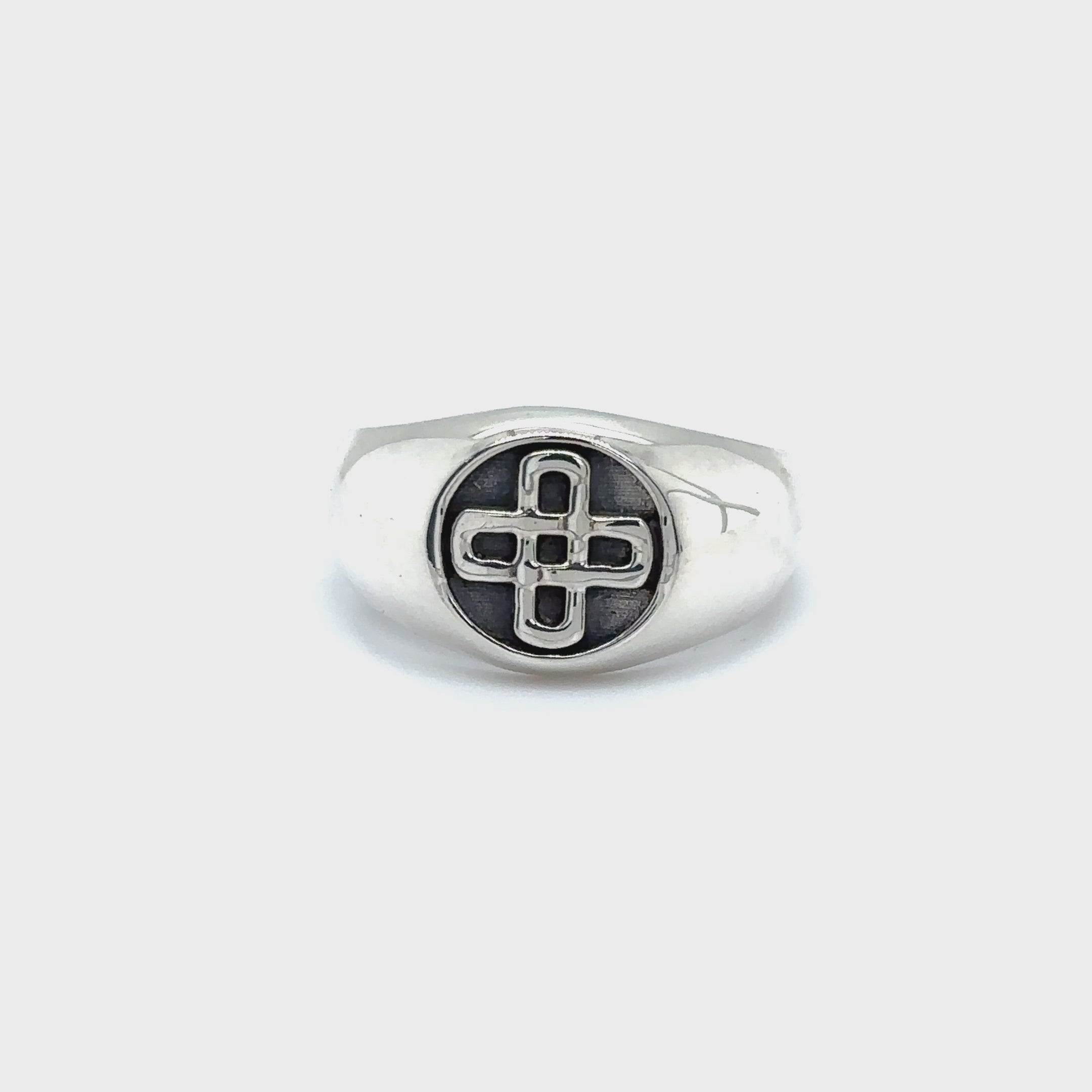 Step into the enigma with our Solomon's Knot Signet Ring. This bold and striking ring is a statement piece suitable for both men and women. Its distinctive design showcases Solomon's Knot on an oxidized background, creating a mesmerizing contrast that stands out. This ancient symbol carries rich meaning, often associated with the enigmas of life, the quest for wisdom, unity, eternity, and the interconnection of all things. Crafted with a bolder style, it brings a touch of mystique to your look while invoking the enduring spirit of seeking wisdom and unraveling the enigmas of existence.