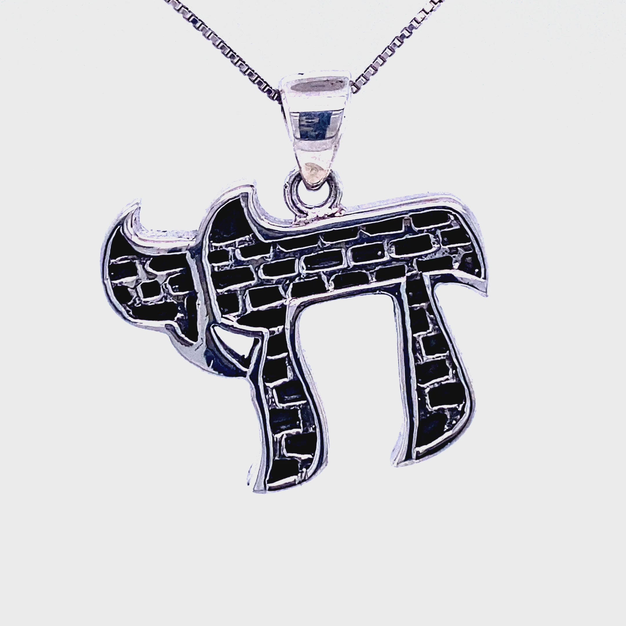 Celebrate the beauty of life with this vintage-styled Chai pendant. In Hebrew, chai translates to "life" and expresses joy for the future and well wishes for a person's life, most notably in Judaism. The structured brick design carved into the symbol brings to mind the stability and security of life and good fortune. With small and large options, this pendant is perfect for someone wanting to celebrate Jewish heritage or simply wanting to cherish life.