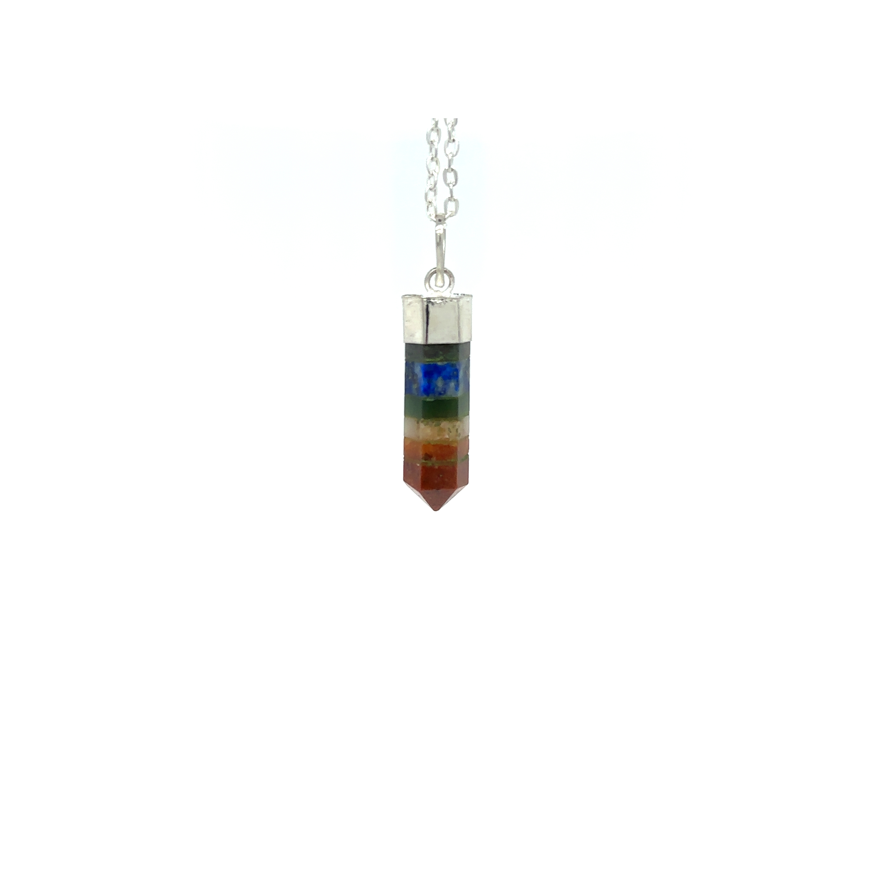 Elevate your energy with our Chakra Point Pendant, a simple and chic way to enhance balance and healing. Each facet corresponds to one of the seven chakras, symbolizing spiritual harmony and wellness. Wearing it invites you to realign and rejuvenate your energy centers, fostering vitality and inner peace. This pendant will become a meaningful addition to your collection, reflecting the importance of holistic well-being.