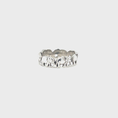 Affirm your family bonds with this charming elephant band. Famed for their strong family ties, wisdom, and resilience, elephants are an endearing symbol of love. Adorned with a procession of these gentle giants, trunk to tail, this adorable ring embodies the essence of family bonds and unity. Each lovely detail captures the pleasing presence of these majestic creatures, symbolizing love, protection, and togetherness. Just as elephants never forget, this ring becomes a memorable keepsake, mirroring the enduring connections and cherished moments you've shared with your loved ones.