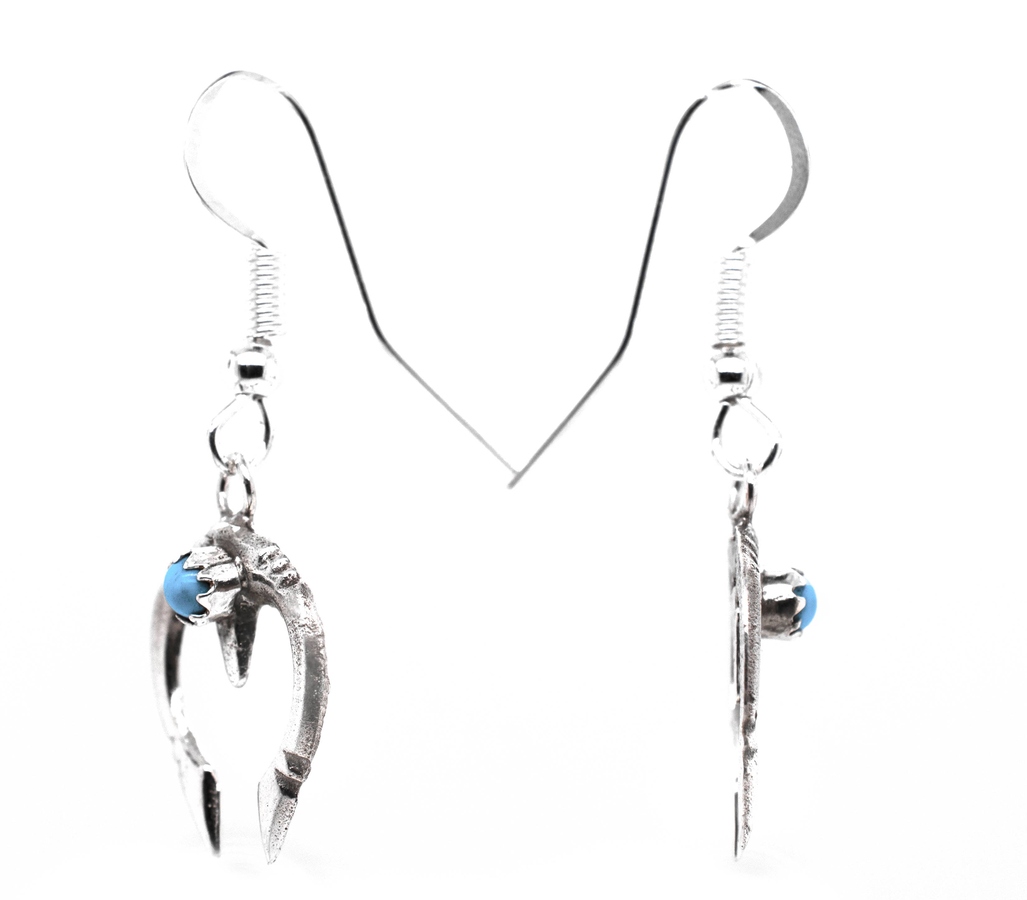 A delicate pair of Zuni earrings glisten with symbolism and strength. The Naja is an ancient talisman for protection dating back to the moors who adorned their horses with this symbol to ward off the evil eye. Adopted by the Native Americans in later times, the Naja has become a symbol of resilience in the face of adversity. Embellished with a single turquoise stone, these dainty earrings capture the beauty of the southwest.