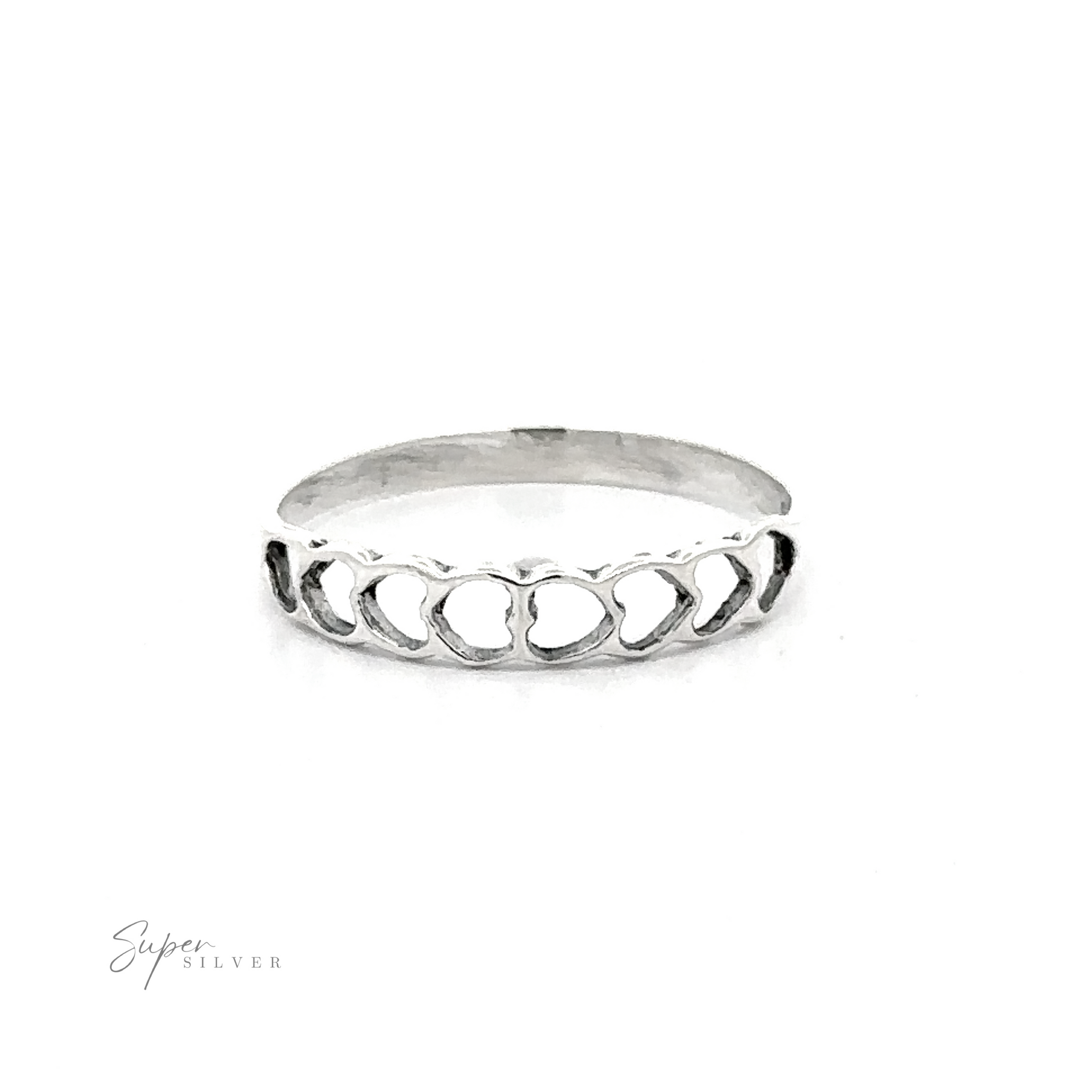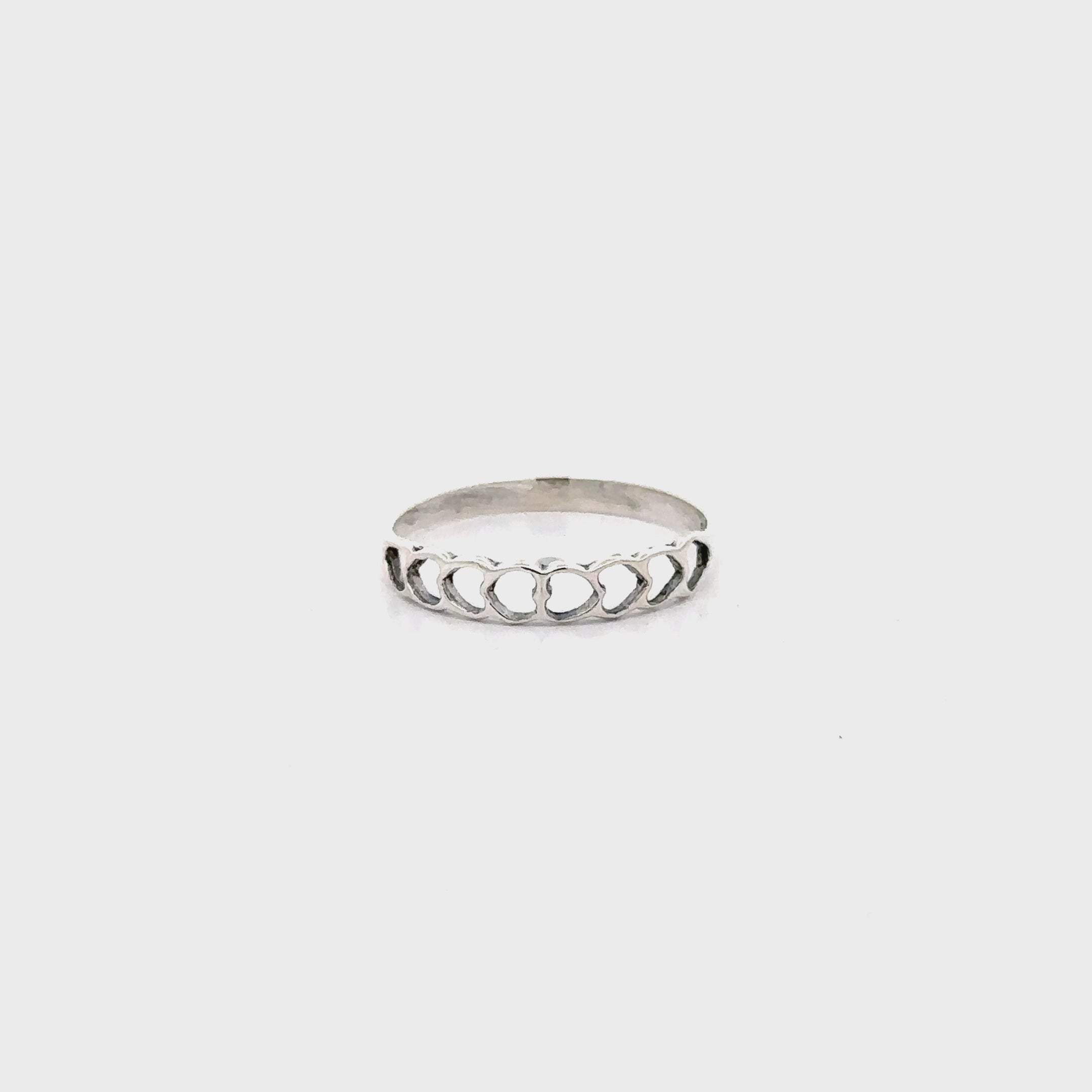 Add a touch of romance to your jewelry collection with this delicate heart cut-out band. Featuring a cute and feminine repeating heart outline on the band, that ring brings a pinch of sweetness to your everyday look. The ring's dainty size makes it an ideal choice for stacking or pairing with any of our other delightful rings for your own exclusive style. This adorable and classic band makes a wonderful gift for yourself or the loved ones in your life.