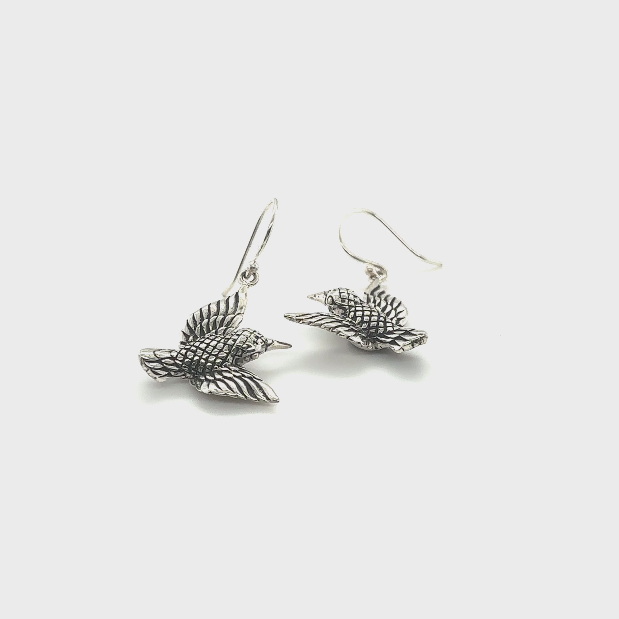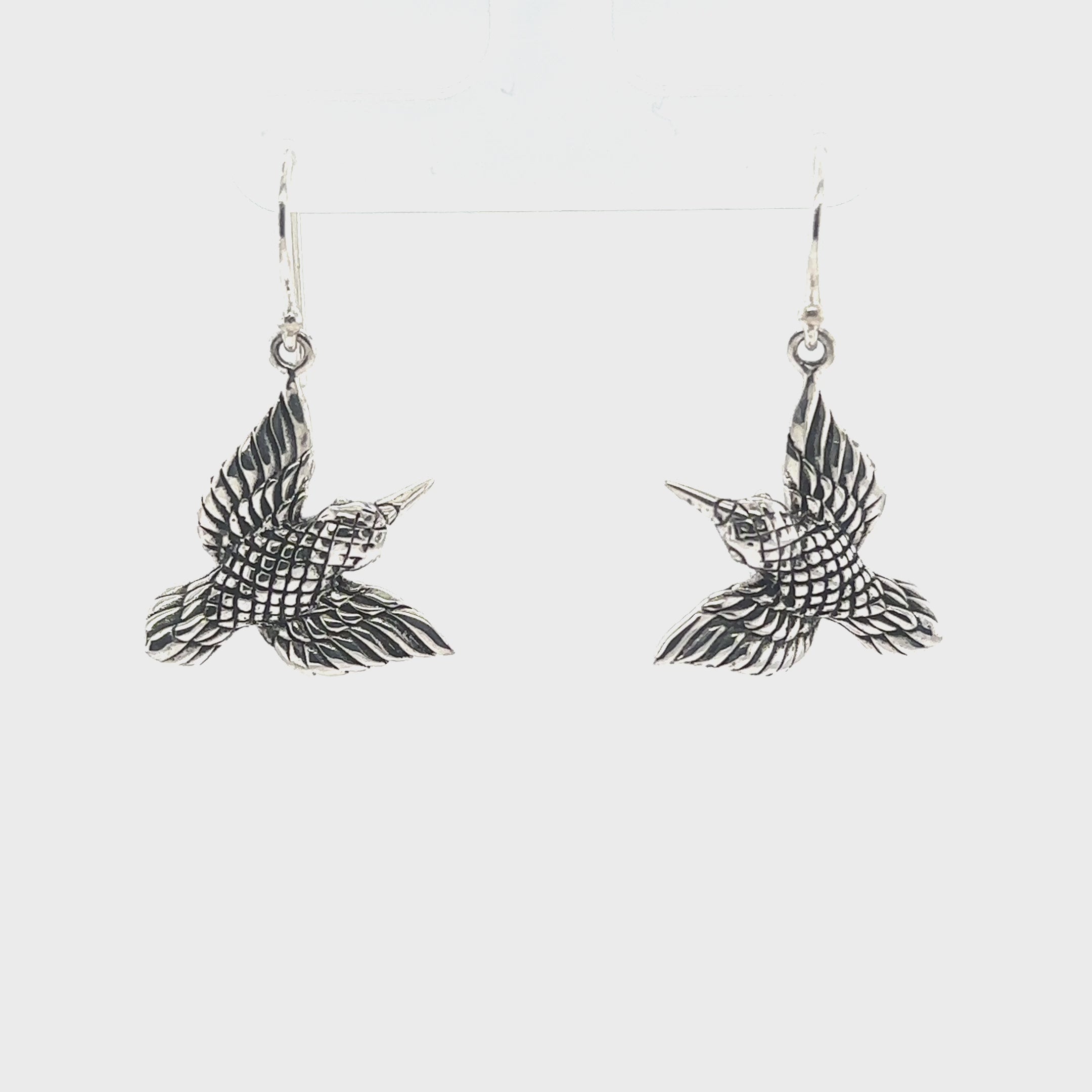 Grace your ears with the enchantment of our Silver Hummingbird Earrings, where the spirit of soaring comes to life. These intricately detailed, smaller-sized hummingbirds exhibit a life-like quality thanks to their brilliant oxidized finish. Suspended gracefully from one wing, they sway with elegance, a testament to their artful design. For nature lovers, these earrings hold a special charm, symbolizing the vibrant energy and delicate beauty of the hummingbird. They are more than just earrings; they are a connection to the world of winged wonders. Handcrafted from one of our cherished artisan collections, a captivating line that consistently delivers pieces that evoke awe and wonder.