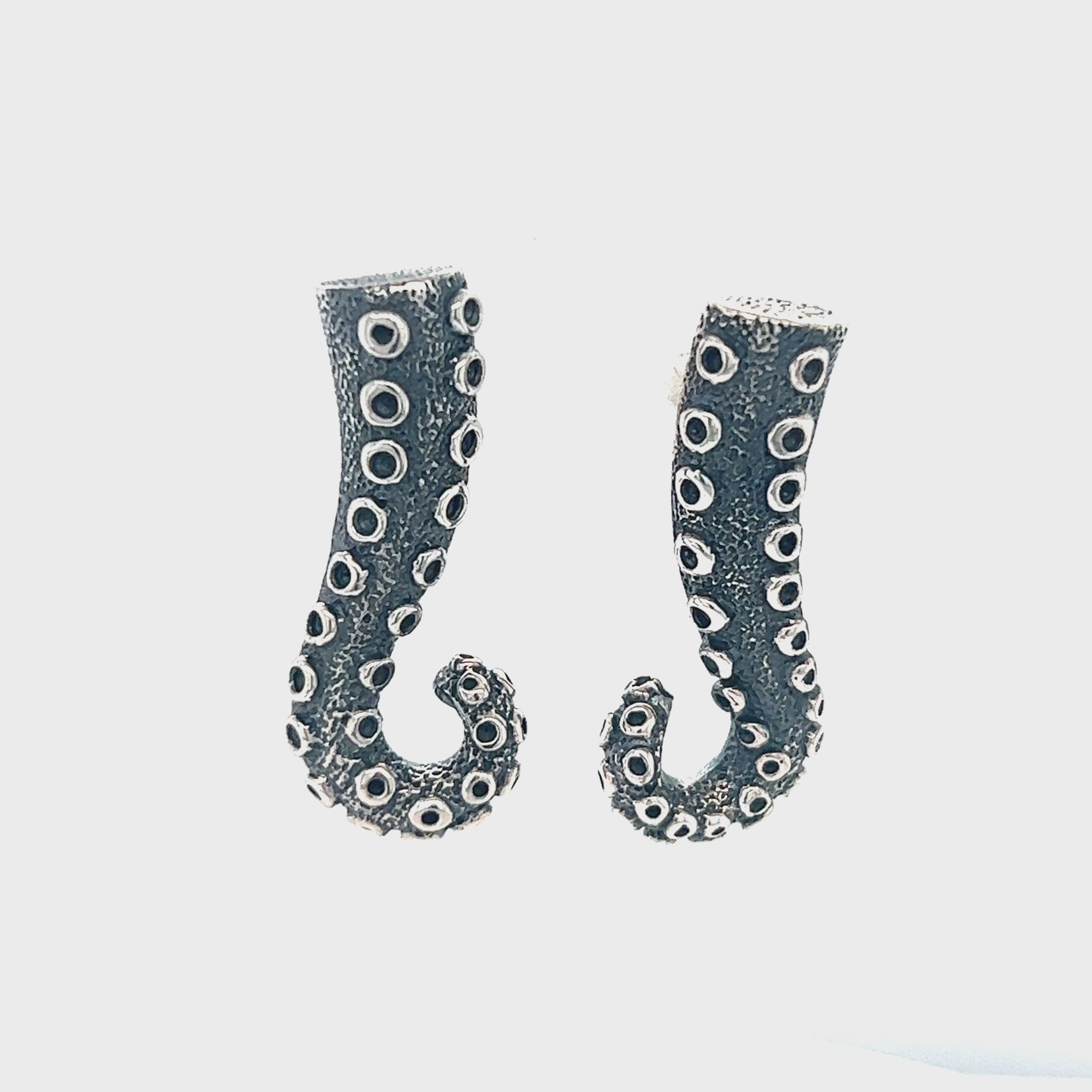 Step into the realm of the deep sea with our Silver Tentacle Post Earrings – a wickedly cool adornment inspired by the Kraken's mythic grasp. These unique treasures capture the essence of the tentacle's end curve, embodying nature's extraordinary design. With their dark, oxidized finish, they exude an edgy charm, perfect for those who appreciate a darker side of fashion. Slip them on to channel the Kraken's power and immerse yourself in the enigmatic depths of your style. Crafted by one of our treasured artisan collections, a mesmerizing and commanding jewelry line that consistently exceeds expectations, these earrings are a perfect choice for those enchanted by the ocean or those with a mysterious, adventurous spirit. Dive into a world of intrigue and beauty as you embrace the allure of the deep.