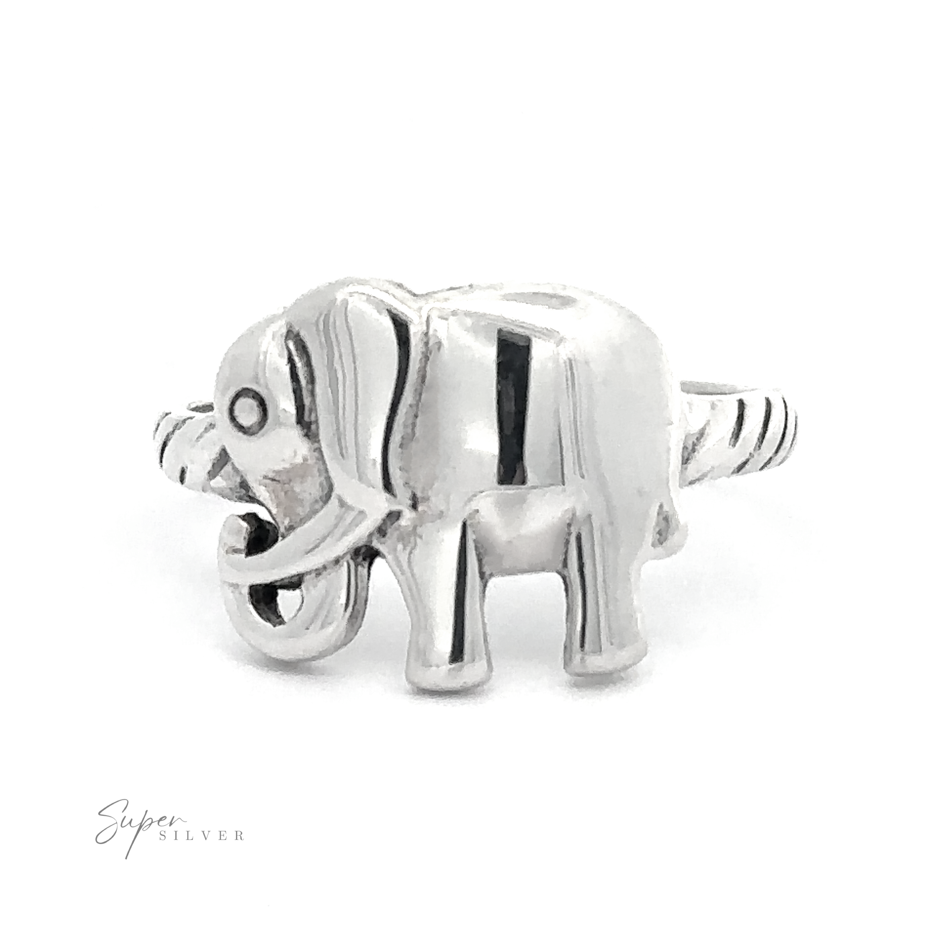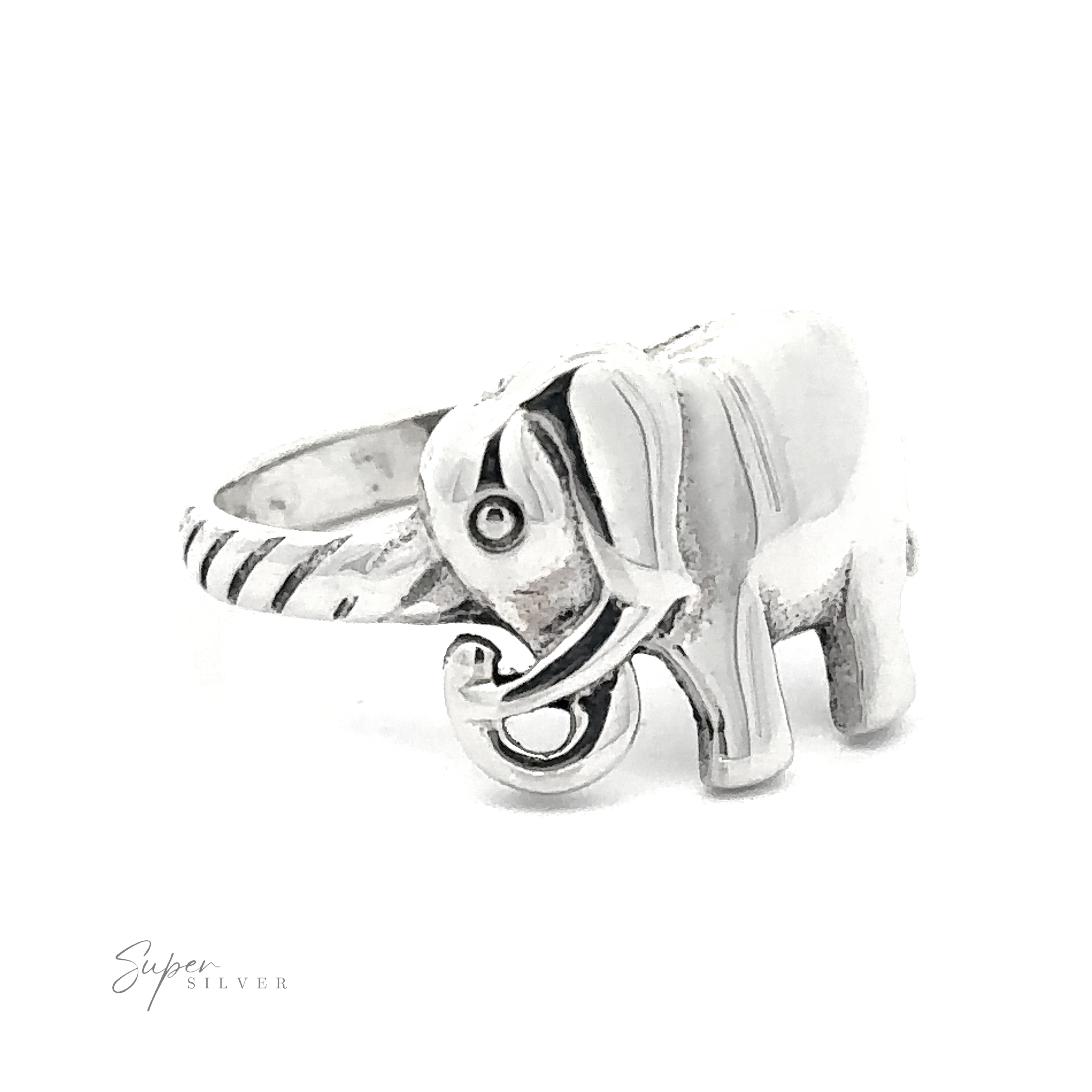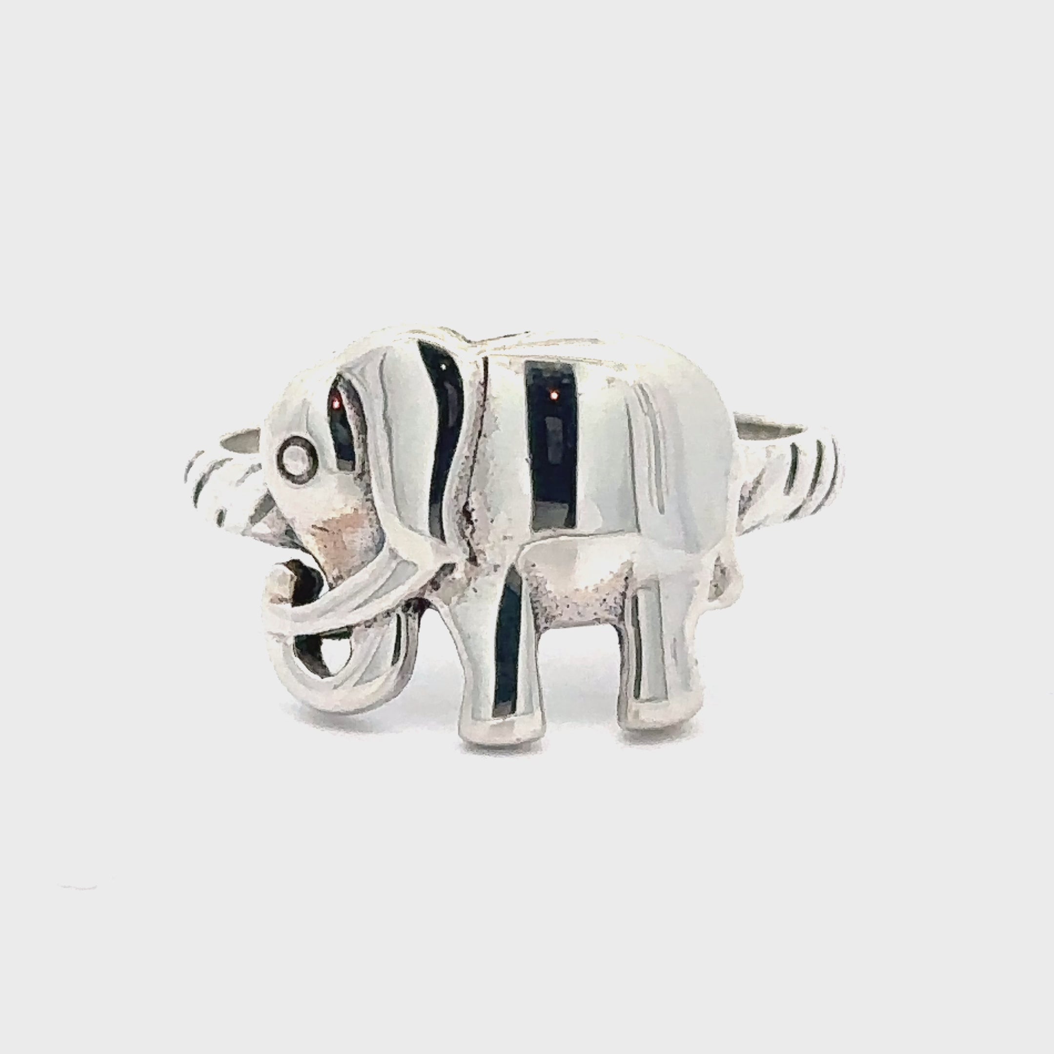 Elegant and sturdy sterling silver elephant ring, with a rope cut band. this ring is perfect for everyday wear.