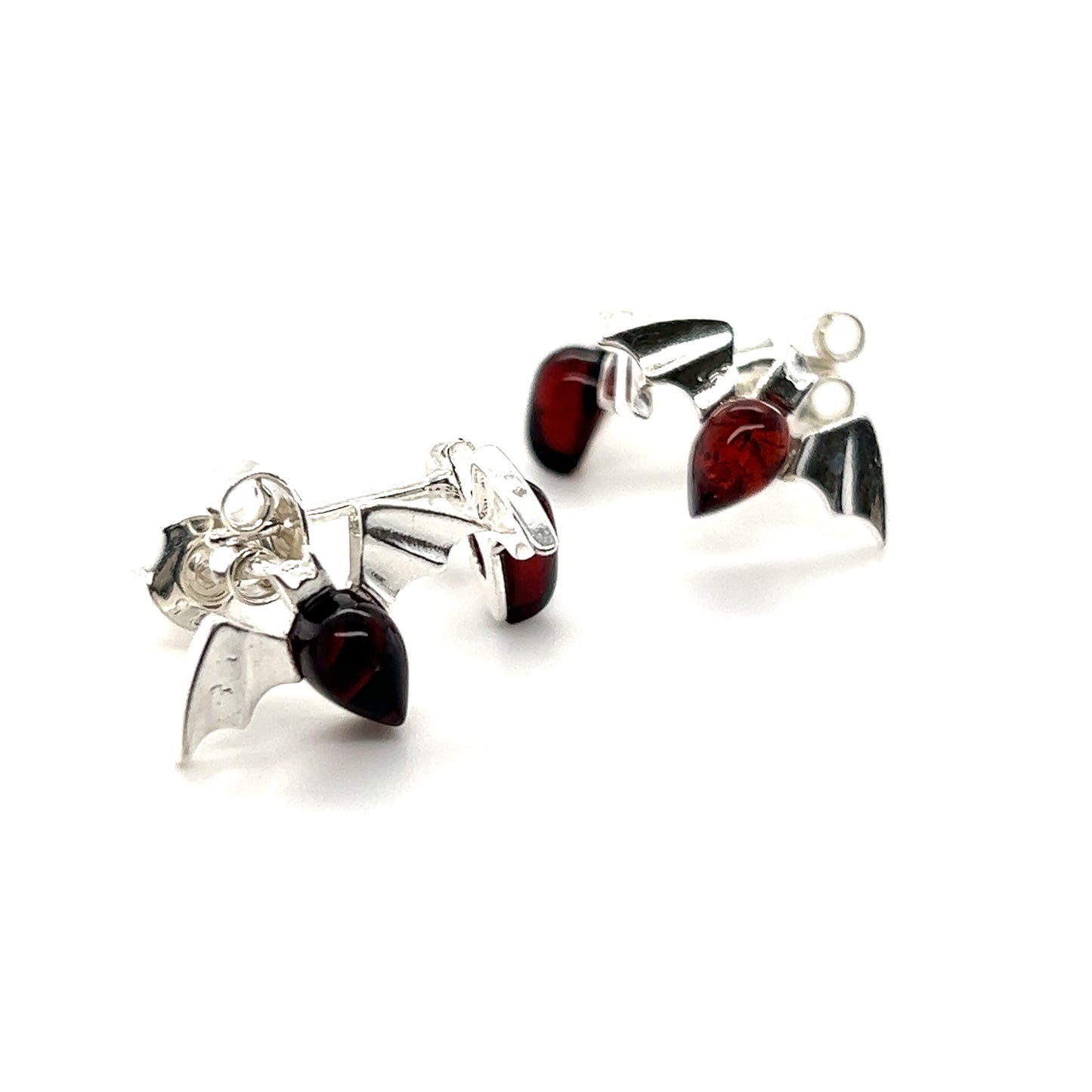 A spellbinding pair of delicate Baltic amber bat studs with the deep dark cherry colors of the autumn night sky. A favorite familiar of witches for centuries, bats are associated with transitions, rebirth, night, and the unseen. Anchored in the luminous beauty of amber, the mesmerizing stone is known to promote calmness, self-confidence, and self-empowerment by grounding you in its ancient sap. These magical earrings are perfect for warm spooky nights when bats fly freely through the twilight skies.