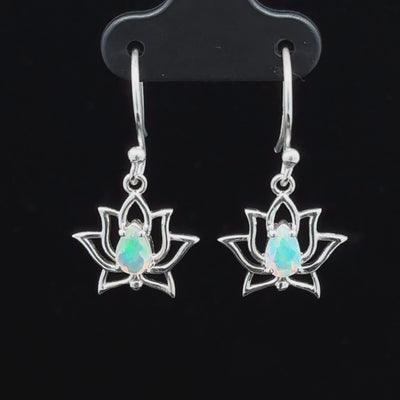 These delicate lotus flower earrings feature a radiant Ethiopian opal at their center, drawing attention with its shifting colors—from tranquil blues to lively greens and fiery reds. The opal's vibrant play of light adds a touch of magic to the elegant lotus design, symbolizing purity and resilience. Lightweight and dainty, these earrings offer a subtle yet captivating sparkle, perfect for adding a natural elegance to any look. Pair them with the matching pendant for a beautifully balanced style that celebrates the beauty and mystique of the lotus.