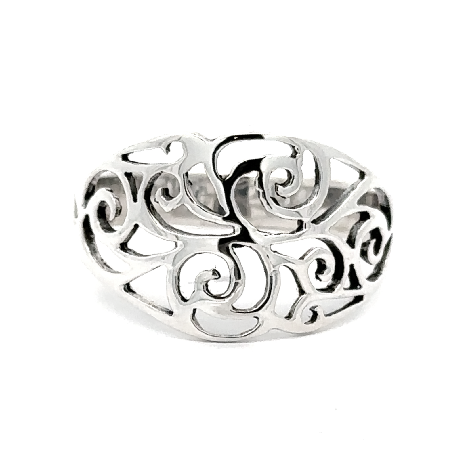 Bring timeless charm to your wardrobe with this fabulous domed filigree ring. Its' bright open-cut swirls dance around your finger with a graceful elegance, perfectly accentuating your vintage style. It makes an exquisite thumb ring for that fun, fearless, free-spirited fashionista.