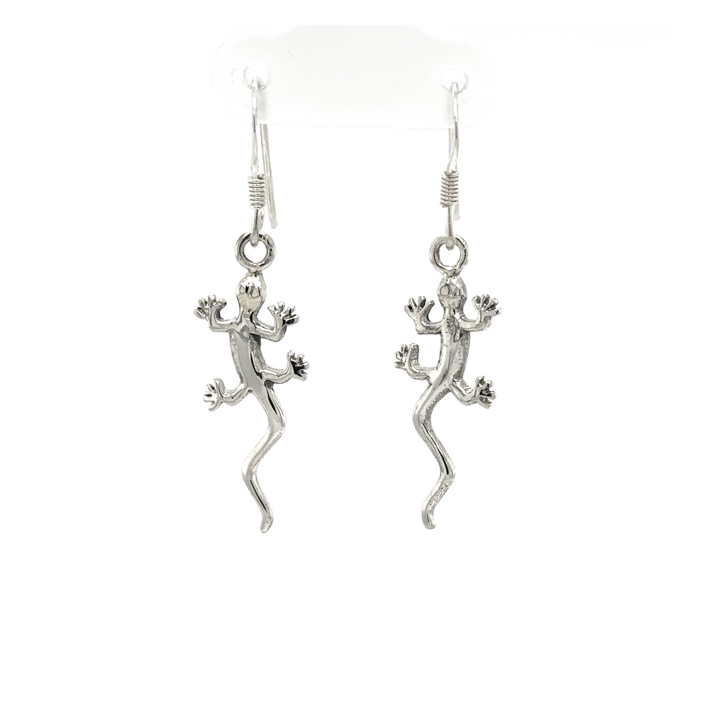 Playful Gecko Silver Earrings