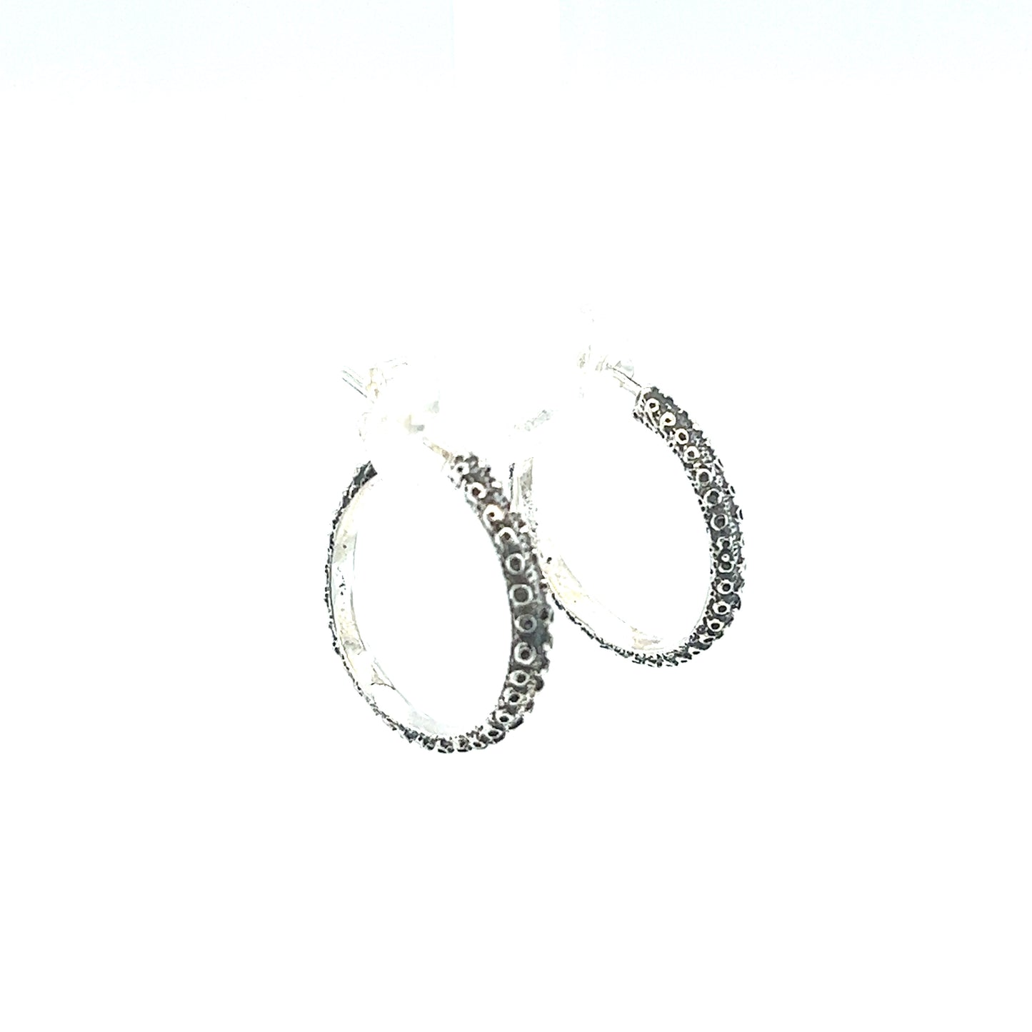 Bring the majestic ambiance of the sea into your daily life with these delicate octopus tentacle hoops. The compelling mystique of the deep stirs this fascinating creature, renowned for its intelligence and regeneration. Unique and dainty, with an oxidized finish that further accentuates the allure of these captivating hoops. Handcrafted by one of our treasured artisan collections, a mesmerizing and commanding jewelry line that never disappoints. A perfect pair of earrings for the ocean enchanted or the mysterious at heart.