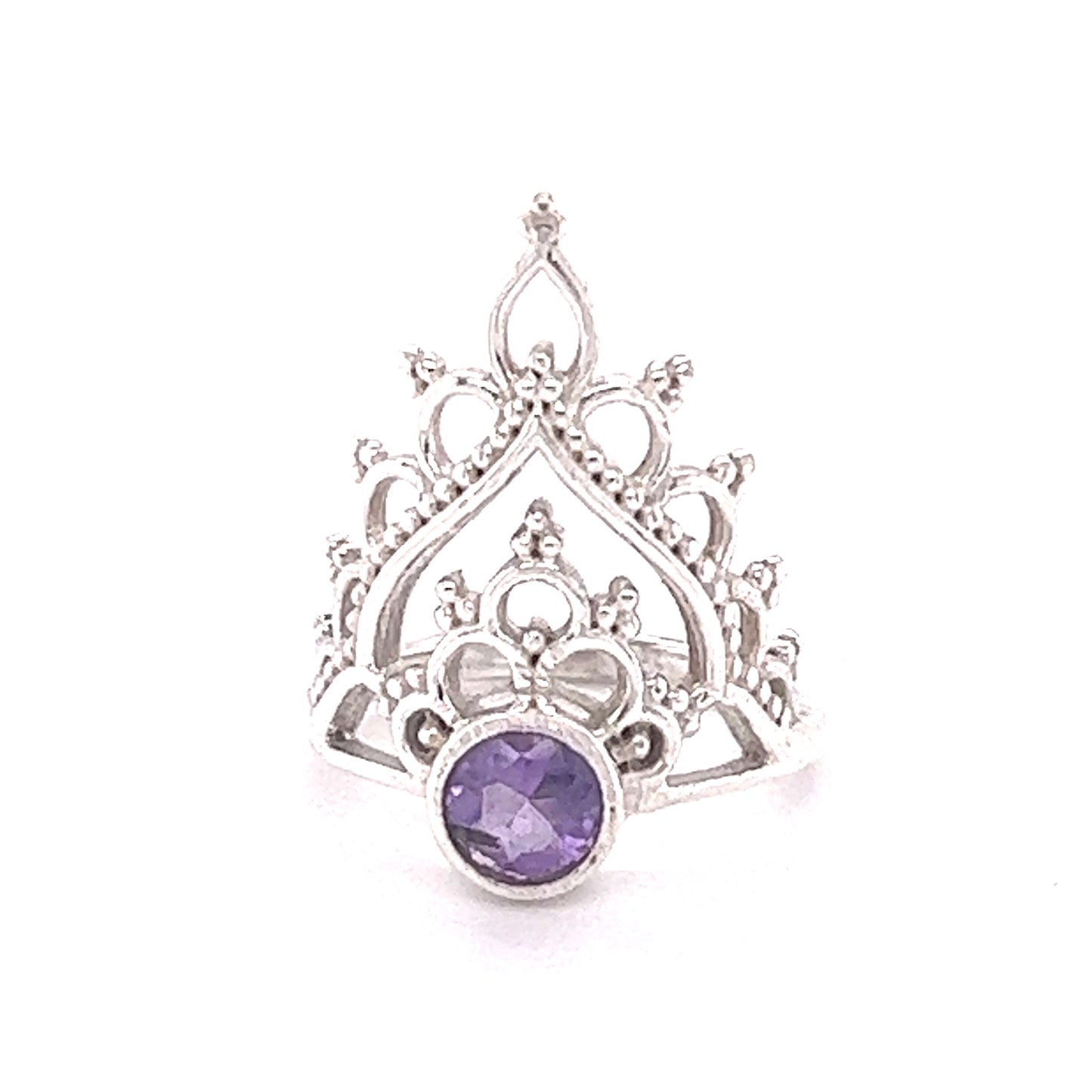 A Henna Crown Ring with Natural Gemstones with a stunning amethyst stone.
