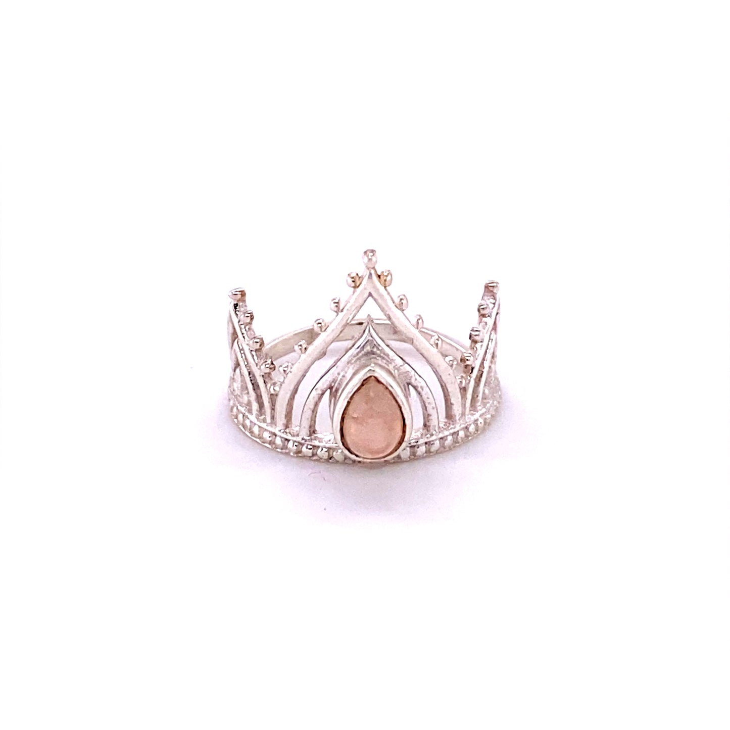 This popular crown ring is stunning, featuring a tear-shaped natural gemstone set in the center of the crown, giving this beauty a regal appeal. The henna-style silverwork is superb, the perfect addition to any boho-chic outfit.