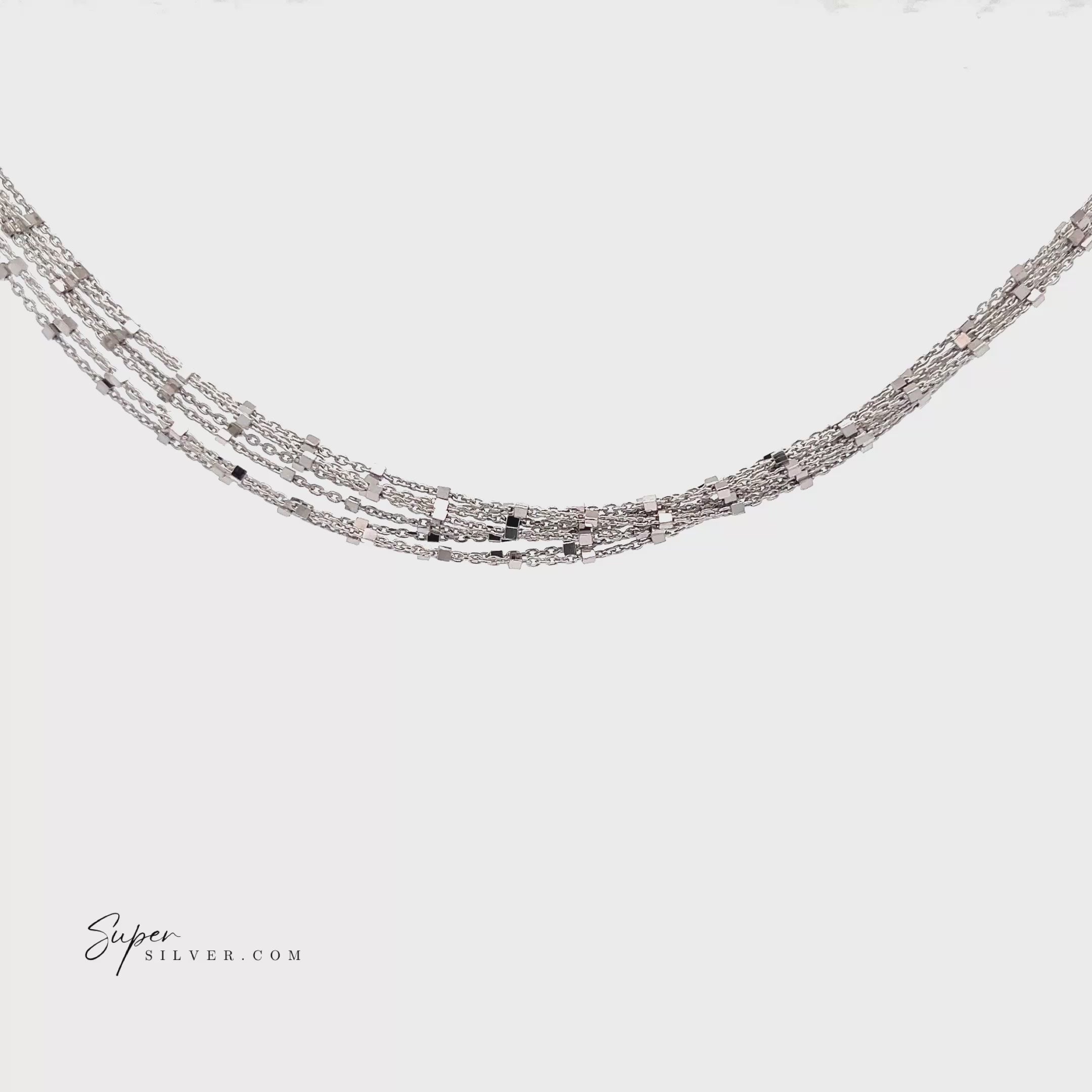 Turn heads and own the moment with this dazzling Italian silver choker. Featuring eight glimmering strands of shimmering chain woven with tiny reflective squares that catch the light like shattered glass, this statement piece wraps your neck in pure attitude. Finished in high-shine rhodium, it is your ticket to instant glamour and unforgettable style—bold, radiant, and unapologetically unique.