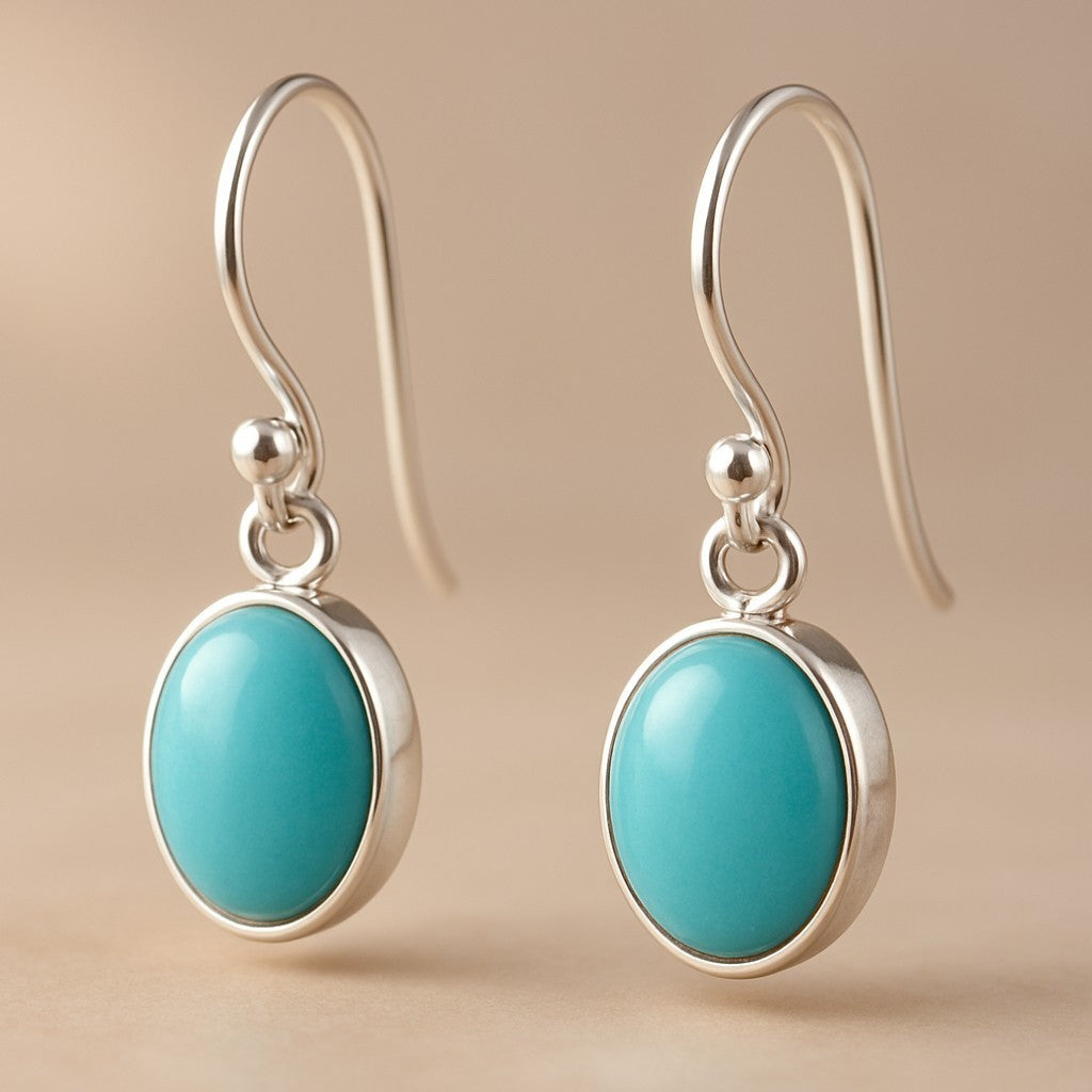 Rooted in the Southwest, made for everyday. These minimalist dangle earrings showcase smooth Kingman turquoise set in simple sterling silver bezels. Clean, understated, and effortlessly cool, they bring a touch of desert sky blue to your look without overwhelming it. A timeless nod to Southwest style—lightweight, wearable, and quietly striking.