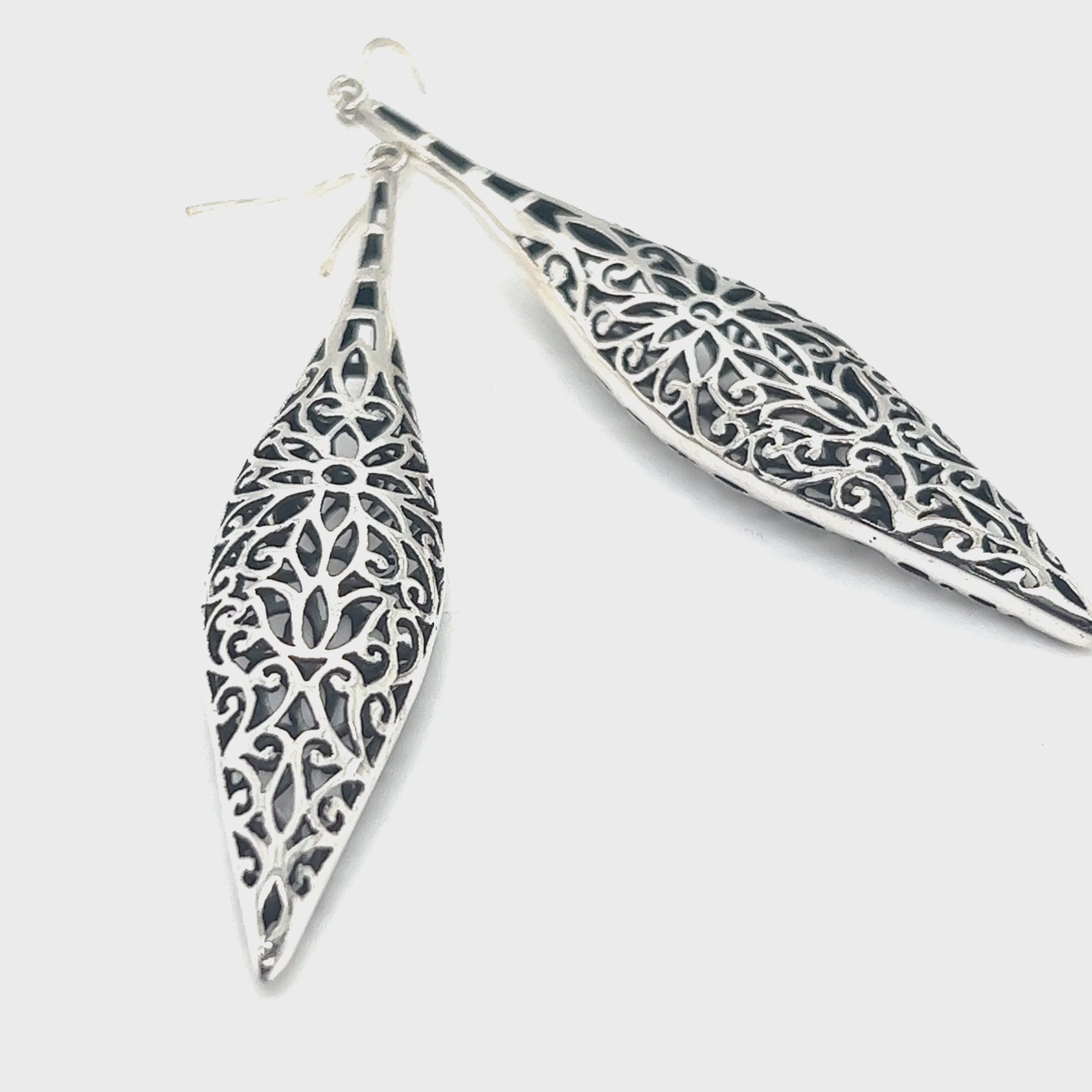 Capture the essence of boho glamour and set your own fashion rules with these stunning Long Filigree Statement Earrings. Crafted in a daring elongated marquise puffed shape, these earrings are a true testament to artistic craftsmanship. Their intricate open filigree design creates a mesmerizing play of light and shadow, adding a touch of mystique to your ensemble. These earrings evoke a free-spirited Bohemian vibe, perfect for those who adore unique, statement pieces that radiate personality and style. Whether you're dressing up for a special occasion or seeking to infuse your everyday attire with a touch of enchantment, these earrings will become your go-to choice. Elevate your fashion game with these stunning Long Filigree Statement Earrings, and let your inner bohemian spirit shine.