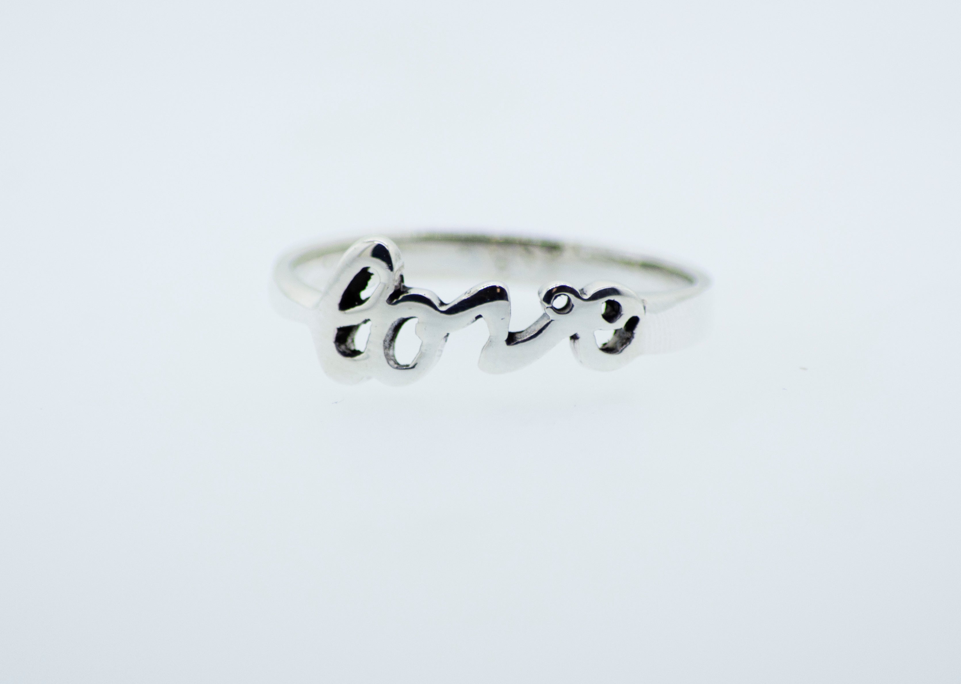 Sweet "Love" ring with cursive writing. The perfect gift for that special someone or give yourself a little self love with this adorable ring.