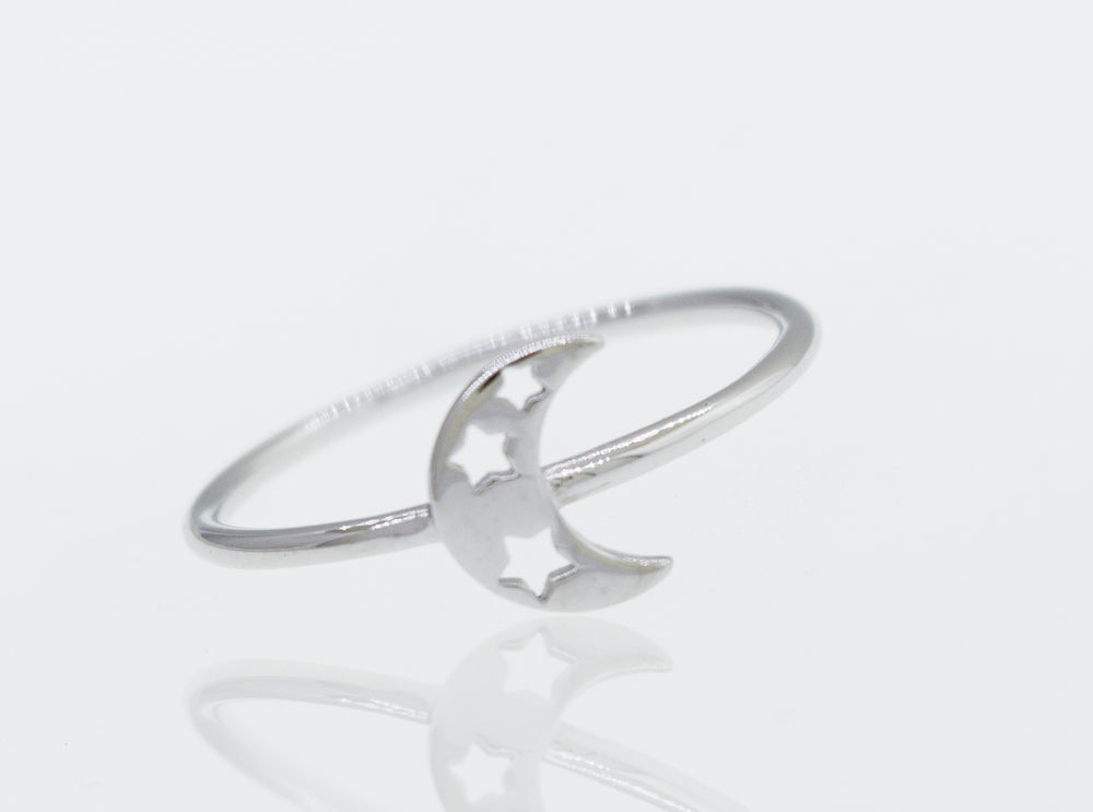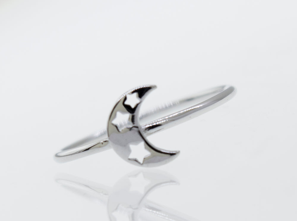 Simple Sterling Silver ring with the moon and stars design.
