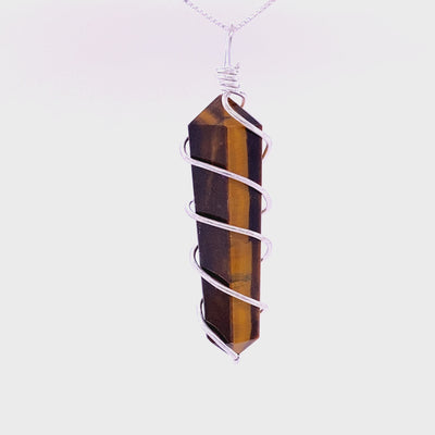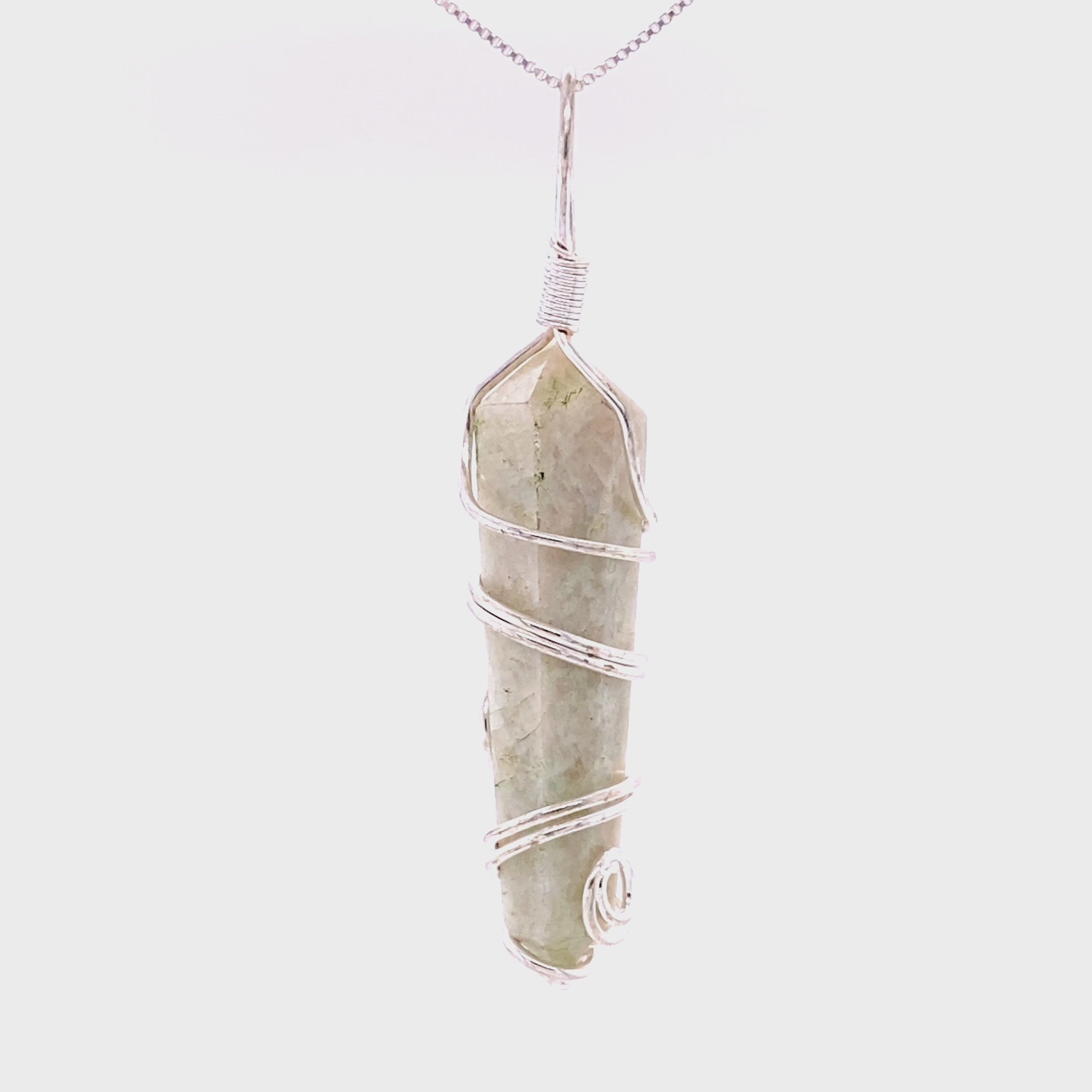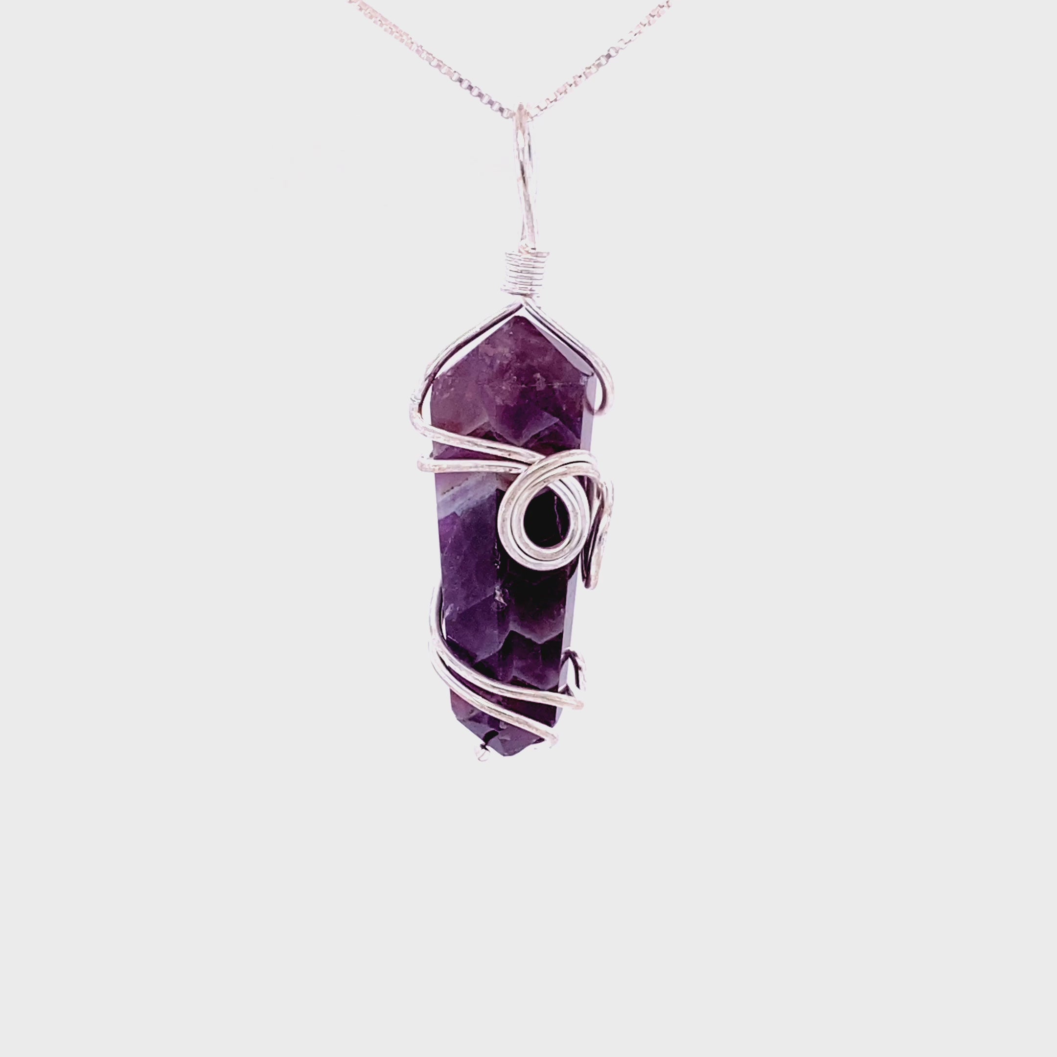 Perfect for everyday wear or layering this genuine stone comes set in a charming filigree swirl wire-wrapped design. Pairs perfectly with a cord or silver chain! Comes in multiple stones.