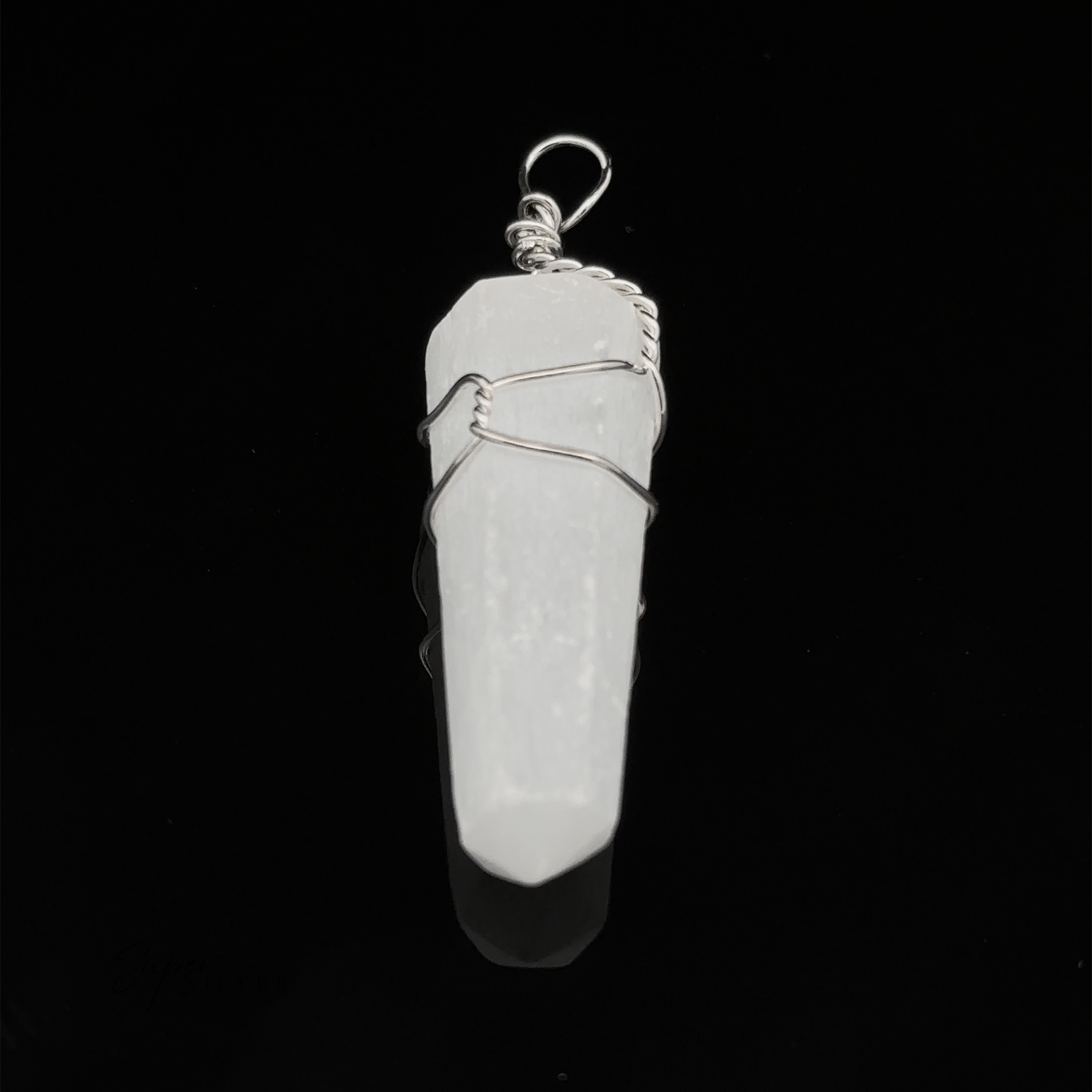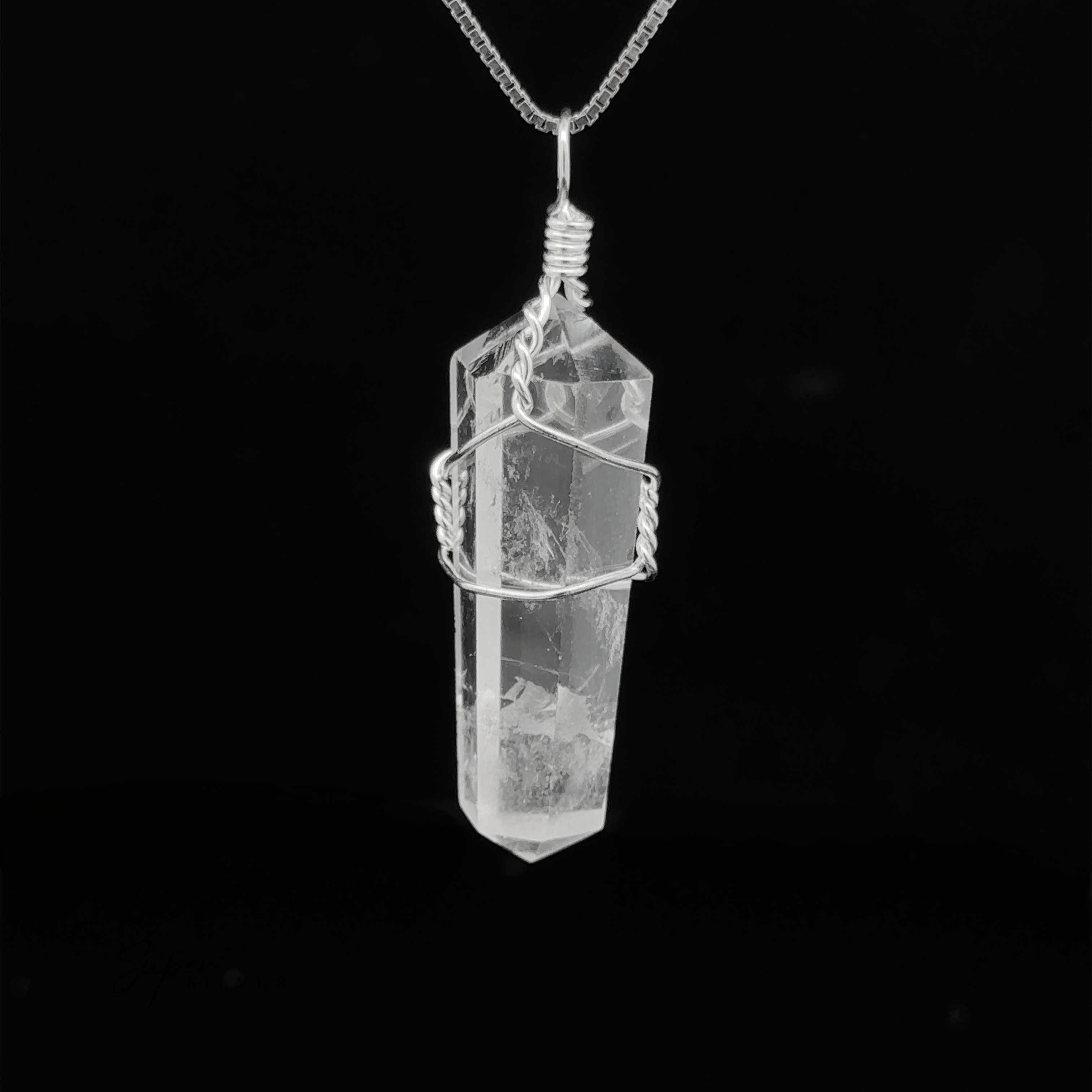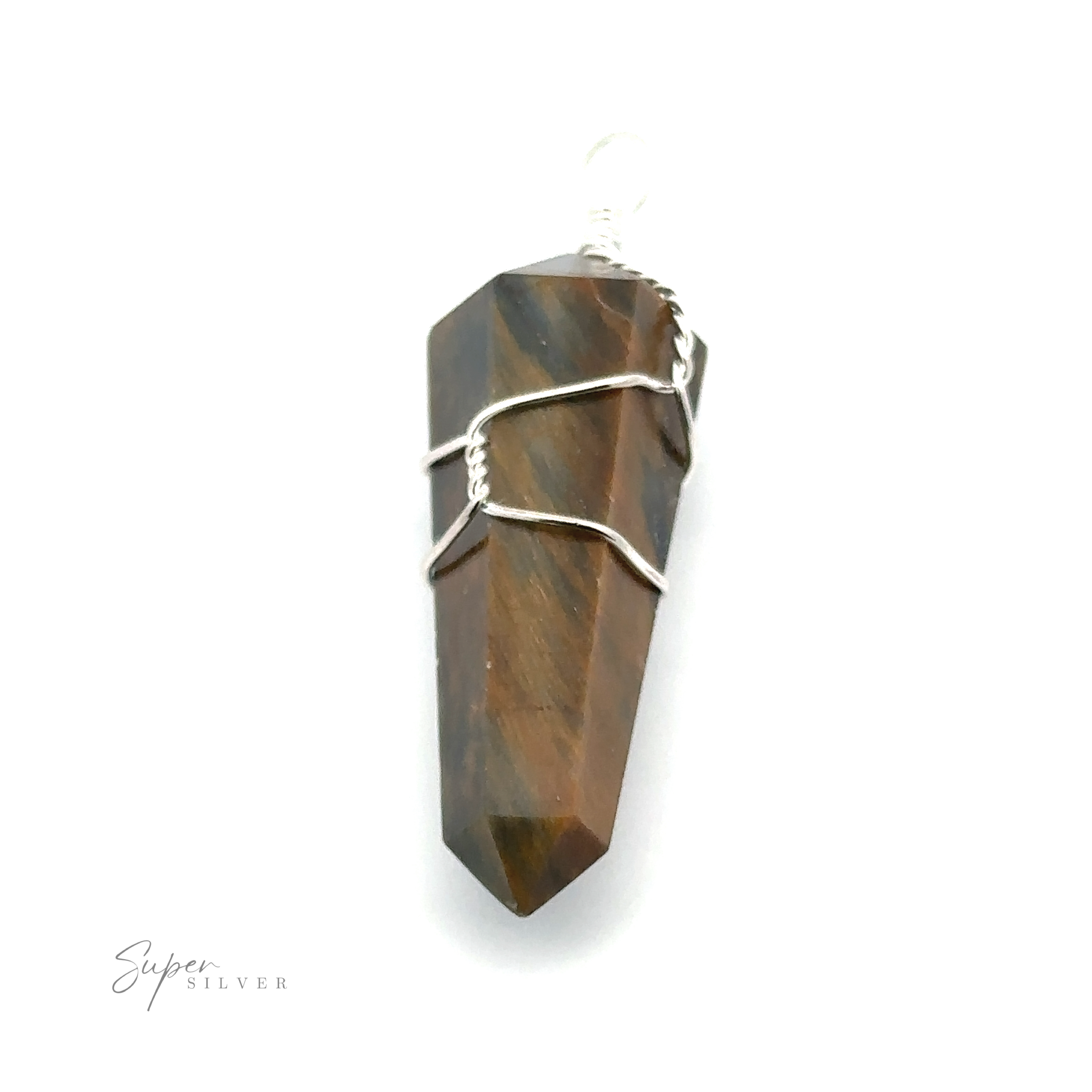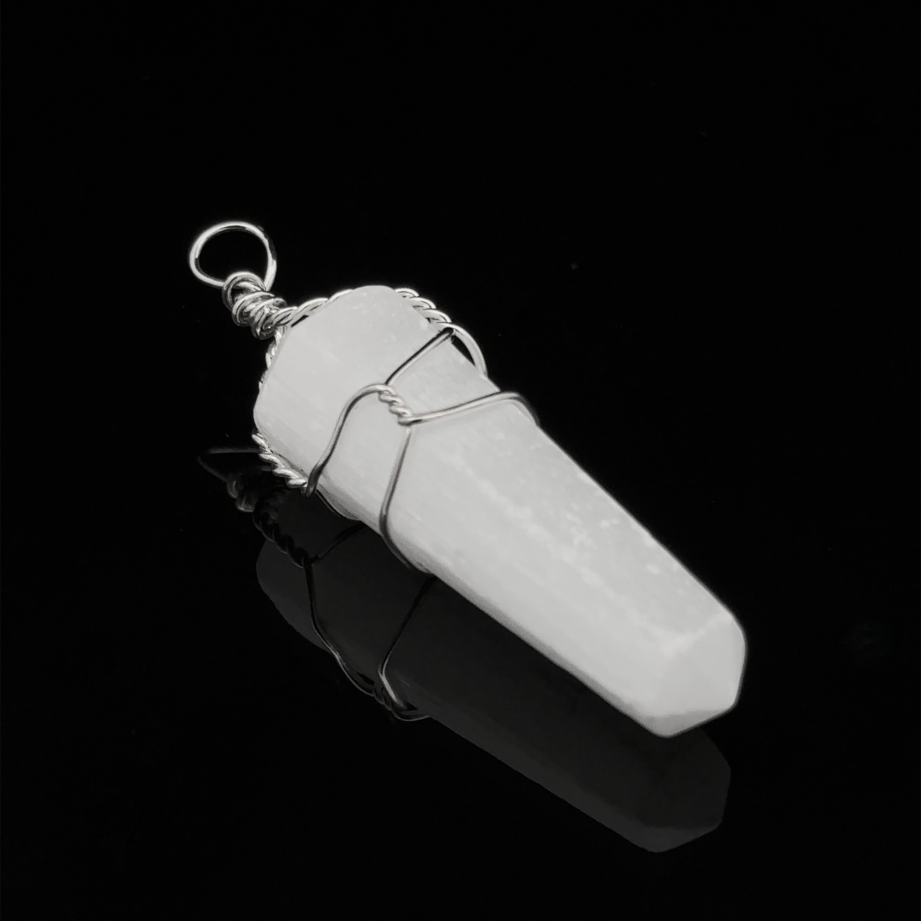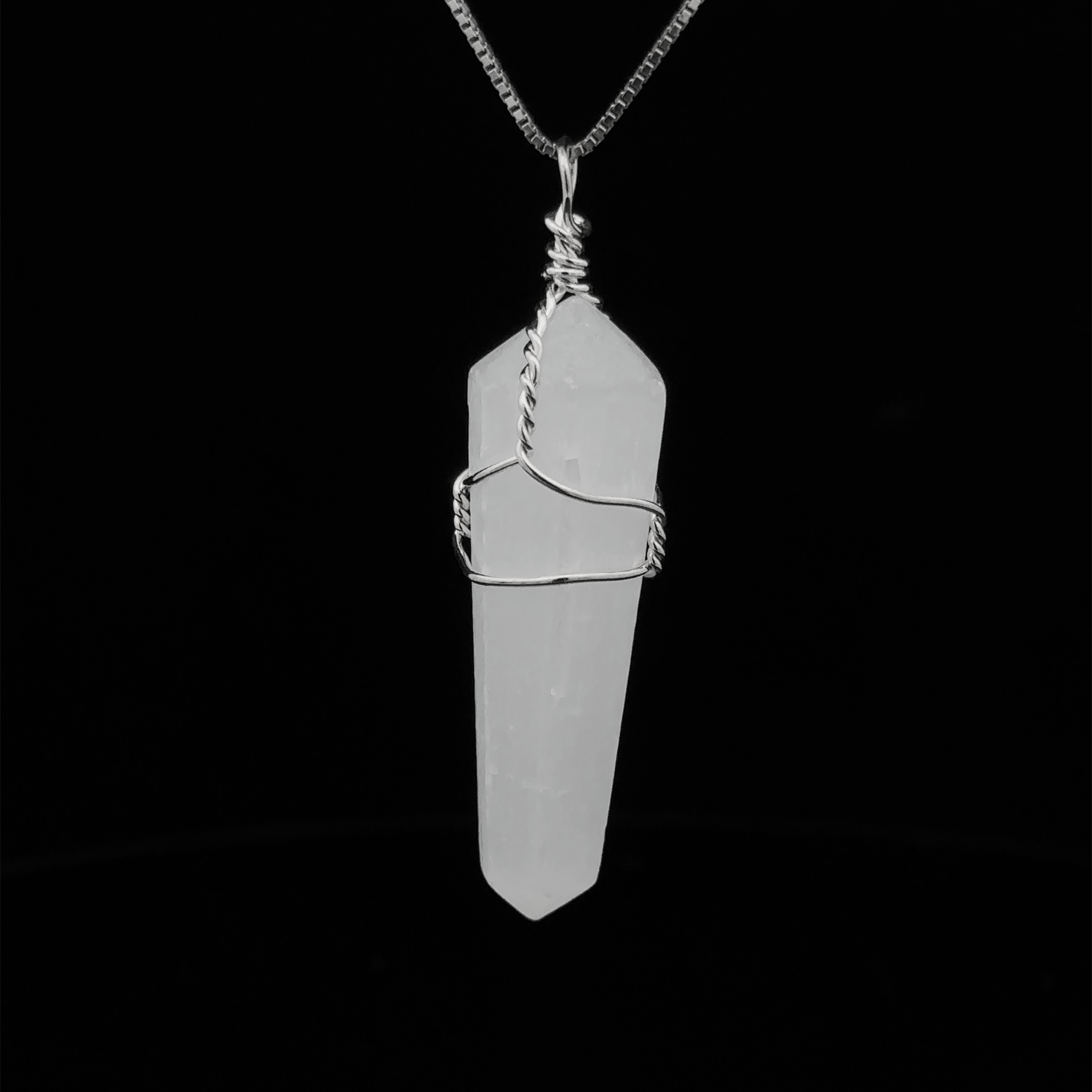 This tapered obelisk stone pendant come in a dainty wire wrapped setting with a twist design. Pairs perfectly with a cord or silver chain!