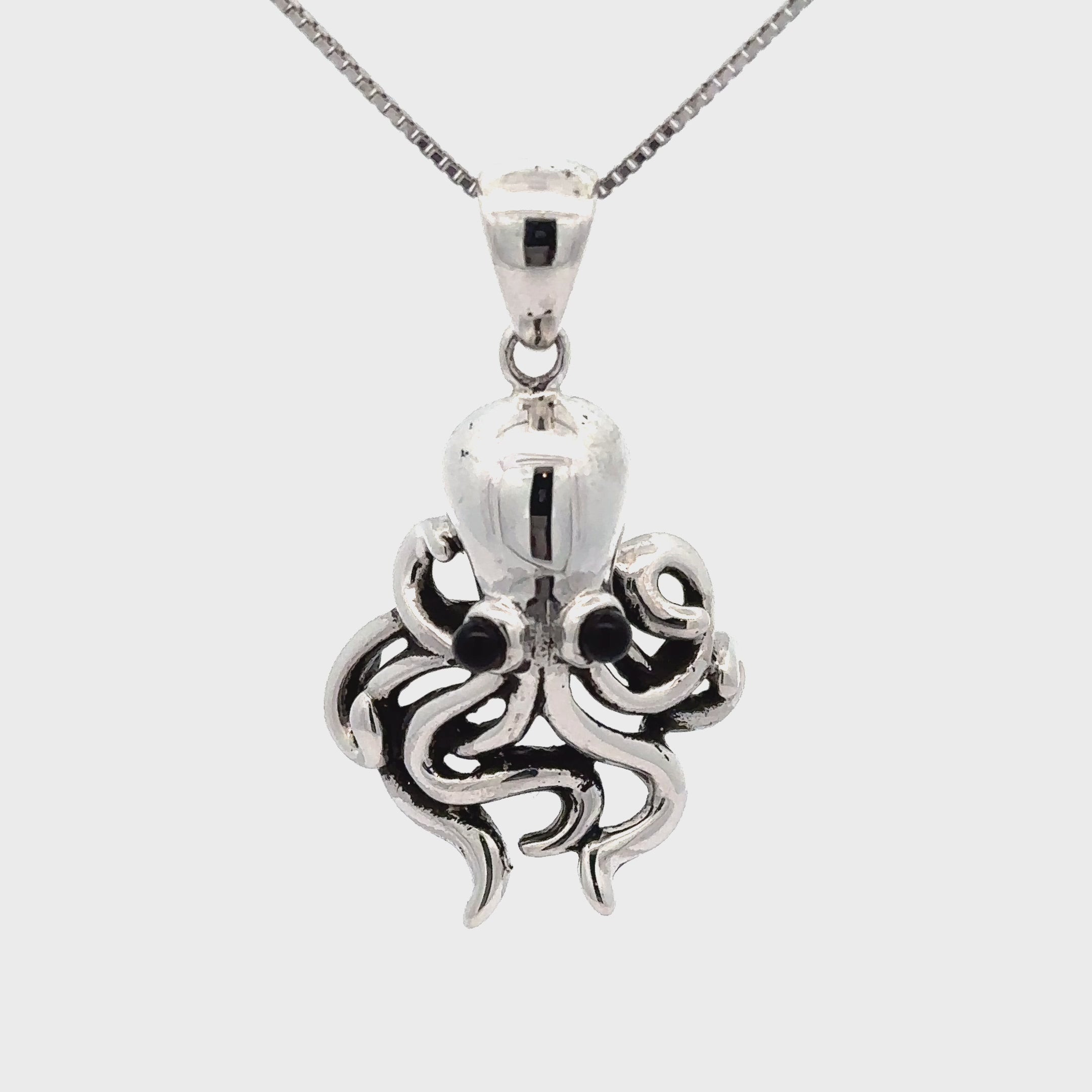 Dive deep into the ocean's mystery with our artisan-crafted Octopus Pendant, a treasure from the depths that brings the enigmatic elegance of the sea directly to your neckline. This exquisite piece, featuring the intelligent and mysterious octopus, is a testament to the ocean's boundless beauty and the creativity of our skilled artisans. With its onyx eyes glimmering like the deep waters, this pendant captures the captivating essence of one of the sea's most fascinating inhabitants.