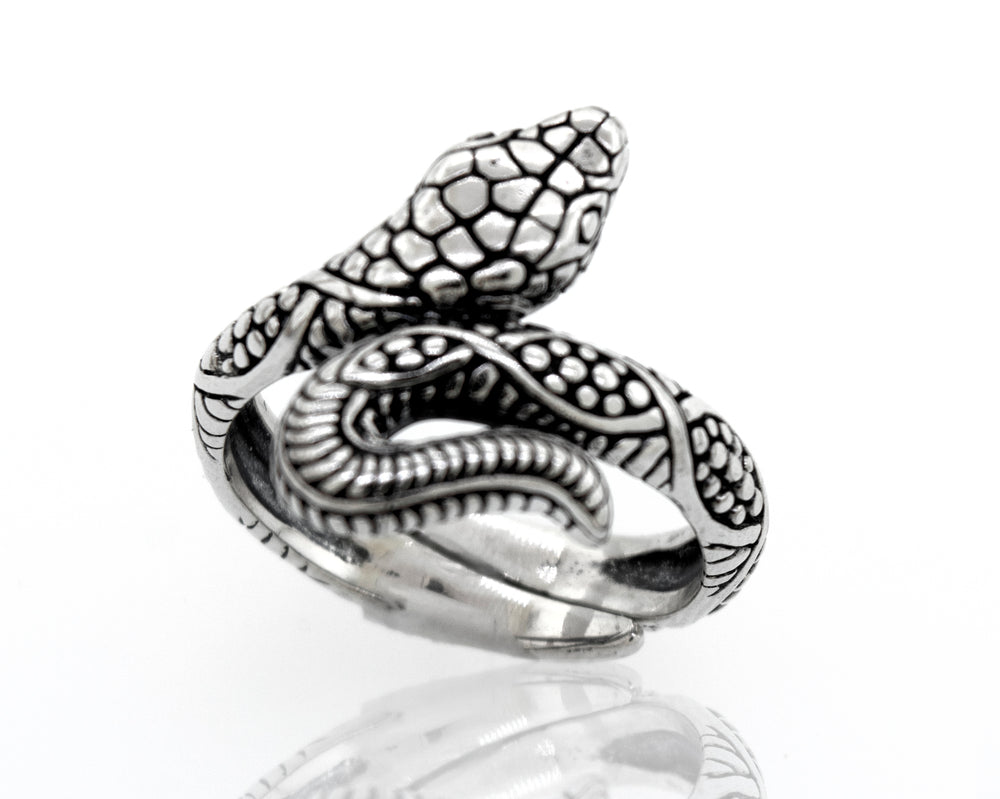 Elegant sterling silver handcrafted designer ring with an adjustable size band and beautiful detailed etched design, available exclusively at our online store only.