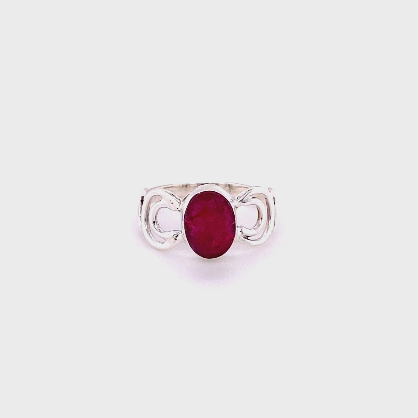 This beautiful Goddess ring is dazzling, displaying a glowing natural gemstone in a simple setting with silver cut-out moons on either side. The perfect divine feminine ring.