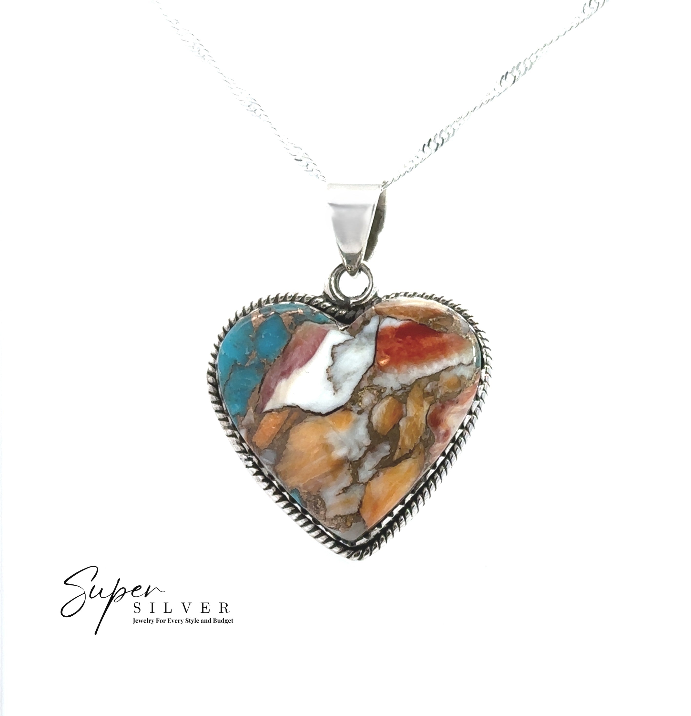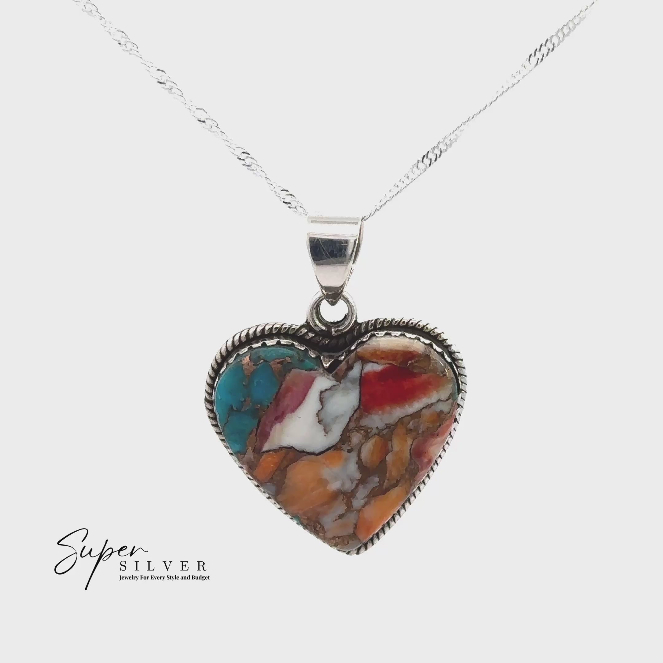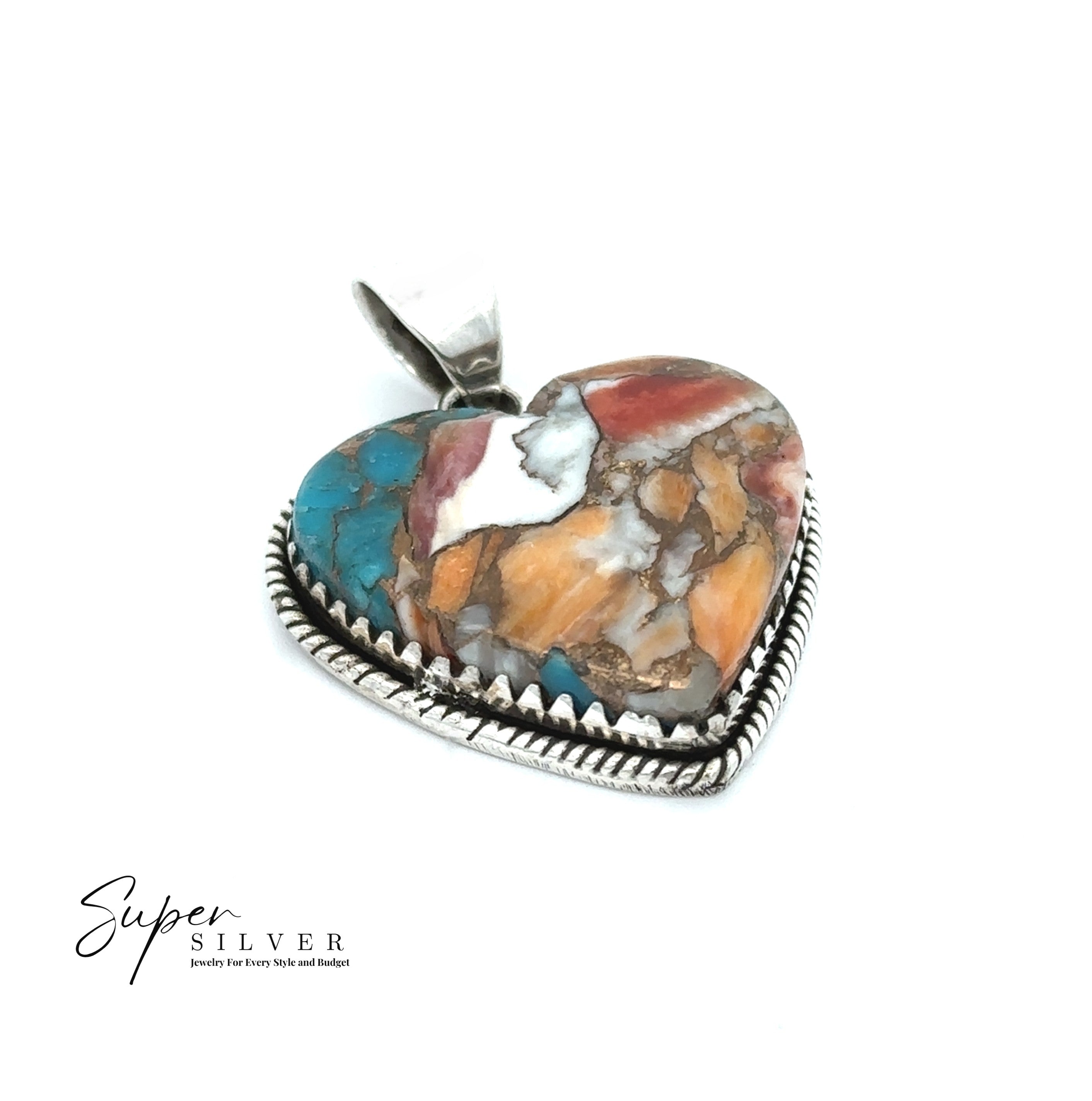 Let your love echo the wild beauty of the land. This heart-shaped pendant is crafted from vibrant Oyster Turquoise—a stunning composite of turquoise, spiny oyster shell, and copper that radiates desert soul. Each piece is a one-of-a-kind fusion of earth tones and fiery warmth, set in sterling silver with a subtle Southwest touch.