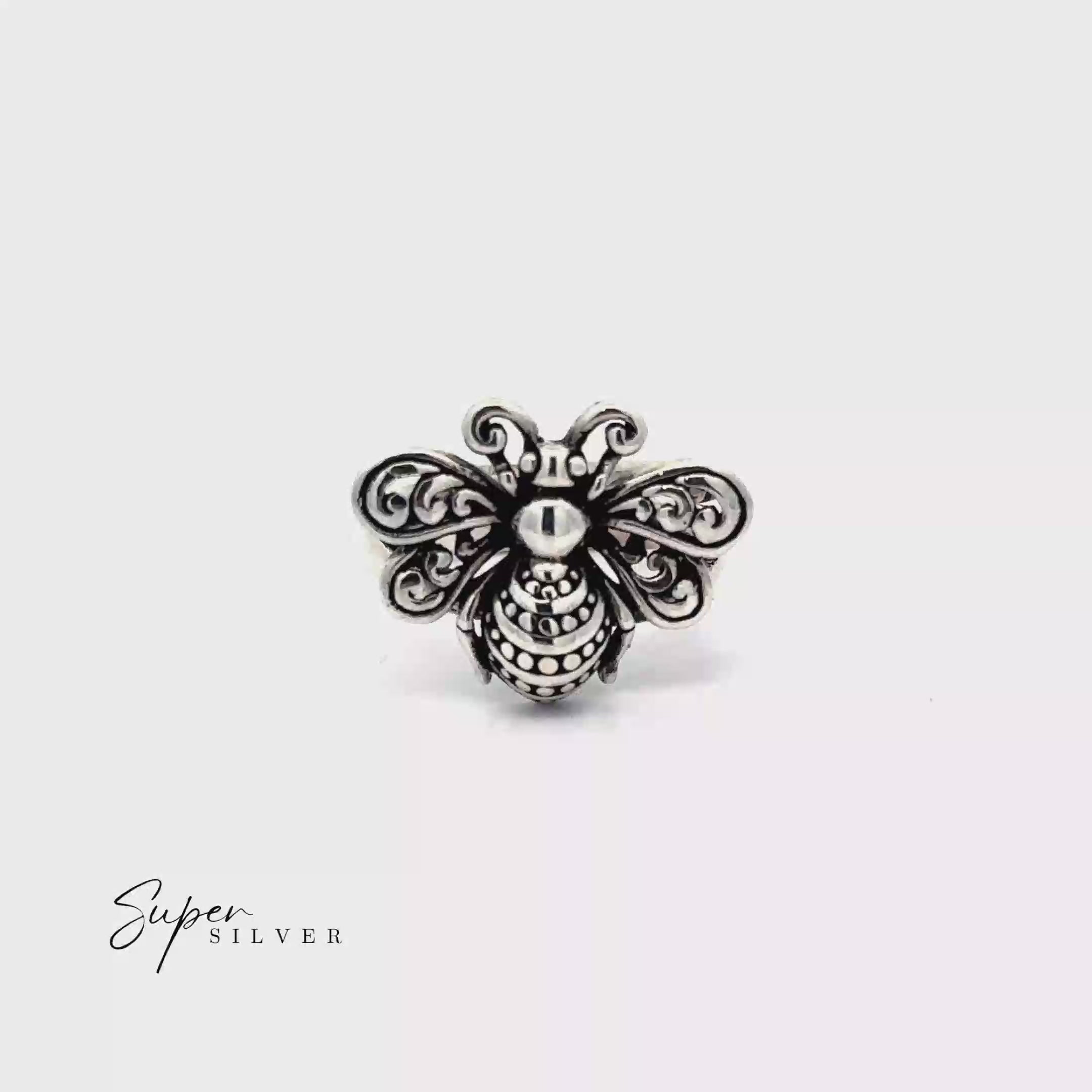 A touch of nature’s magic for your hand—this sterling silver bee ring buzzes with artisan charm. From the graceful swirls etched into its wings to the dotted detail along its body, every feature is brought to life with remarkable depth and texture. Symbolizing community, hard work, and the sweetness of life, this little bee makes a meaningful everyday companion. Meticulously handcrafted as part of our esteemed Artisan Collection, it’s a wearable work of art that celebrates nature’s most beloved pollinator.