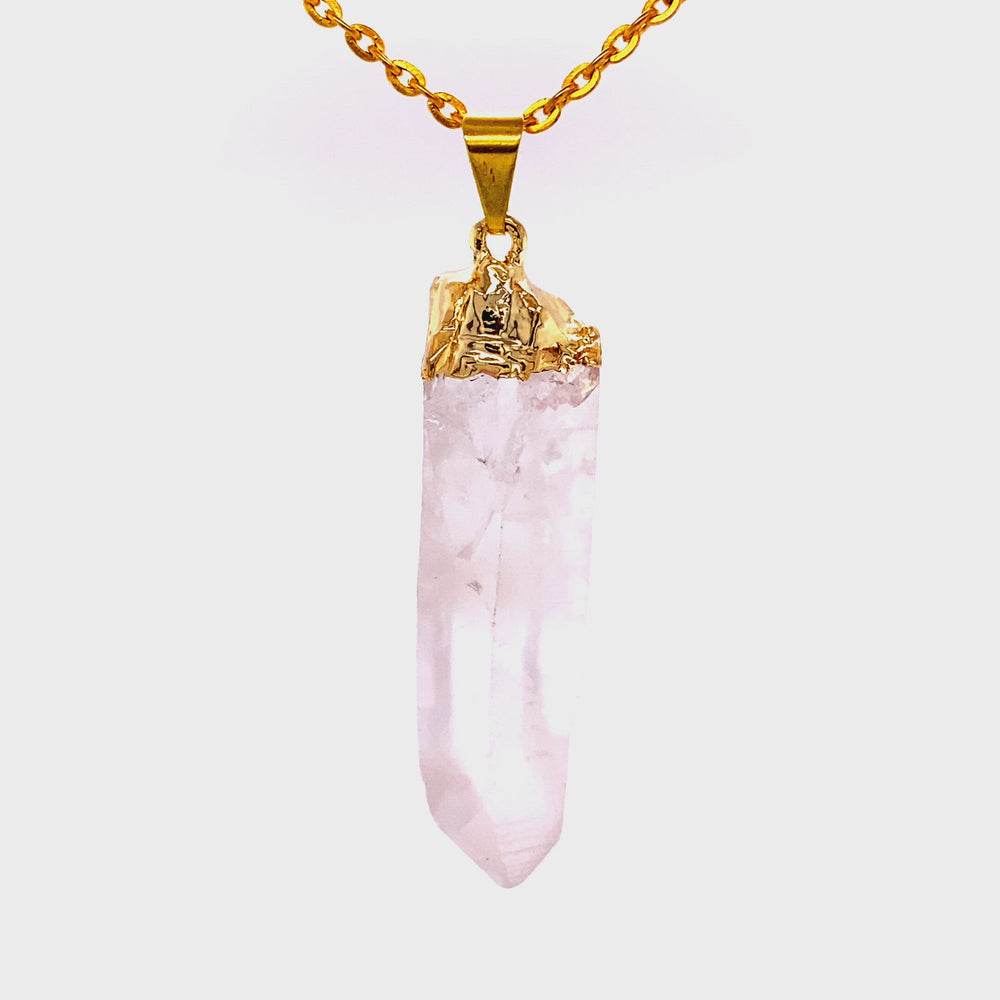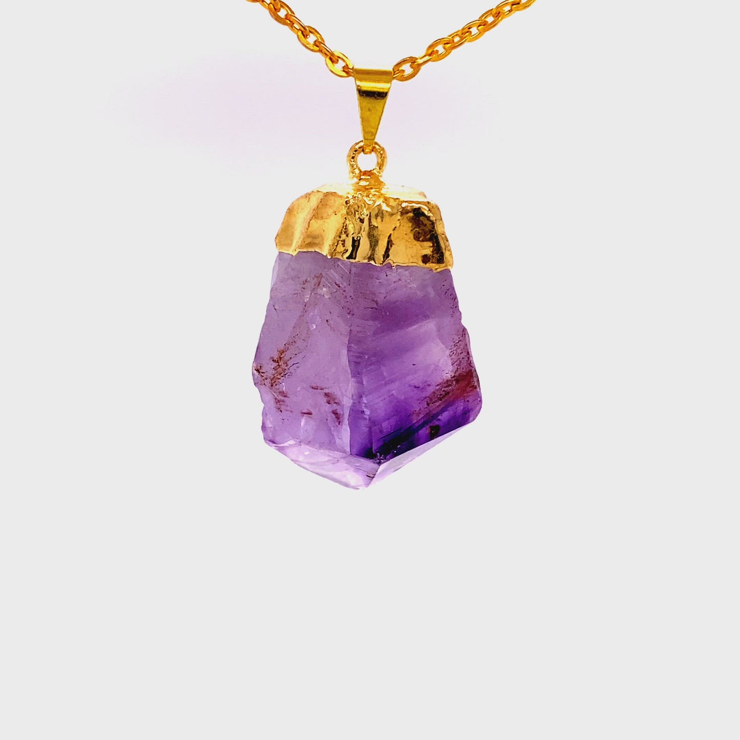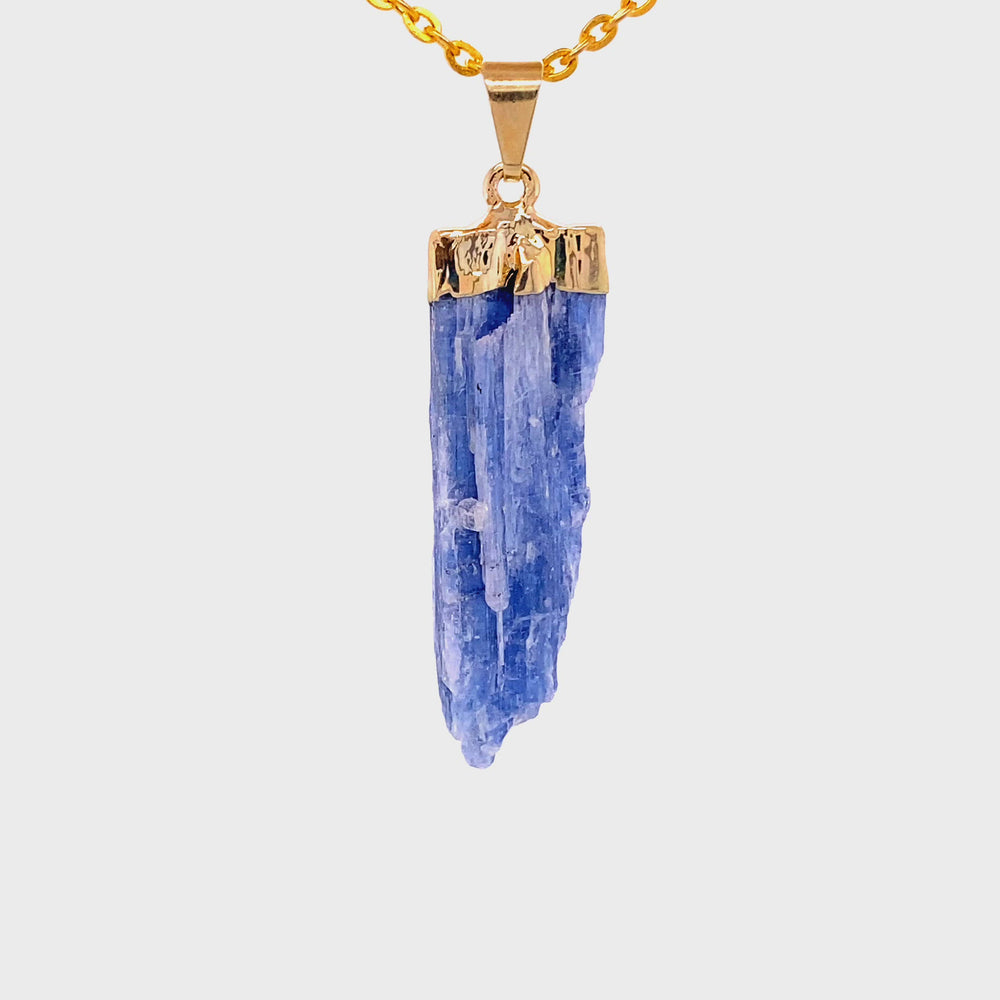 Natural Gemstone pendant with gold plated cap. This earthy raw crystal is great for layering. offered in various stones, including amethyst, citrine, white quartz, smokey quartz, Kyanite, and black tourmaline.