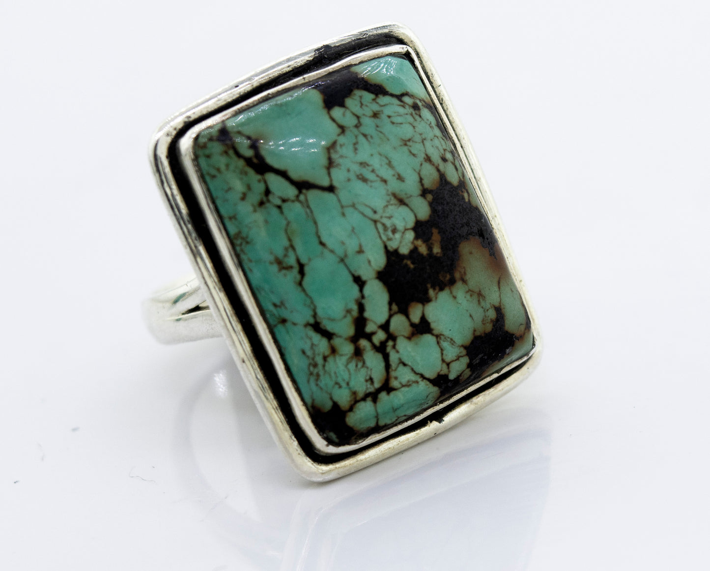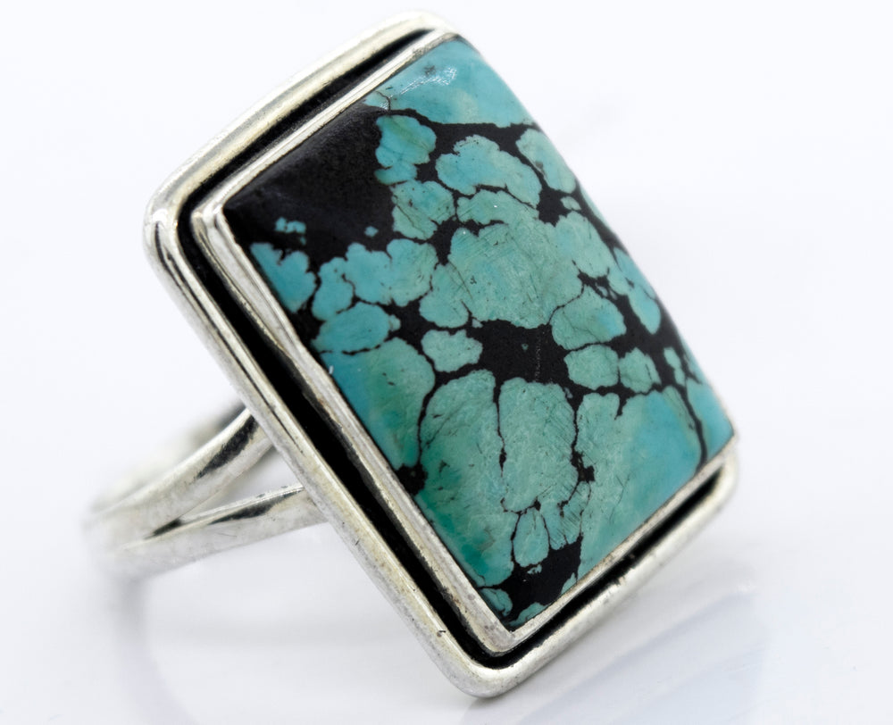 Rectangular Natural Turquoise Ring With Plain Border