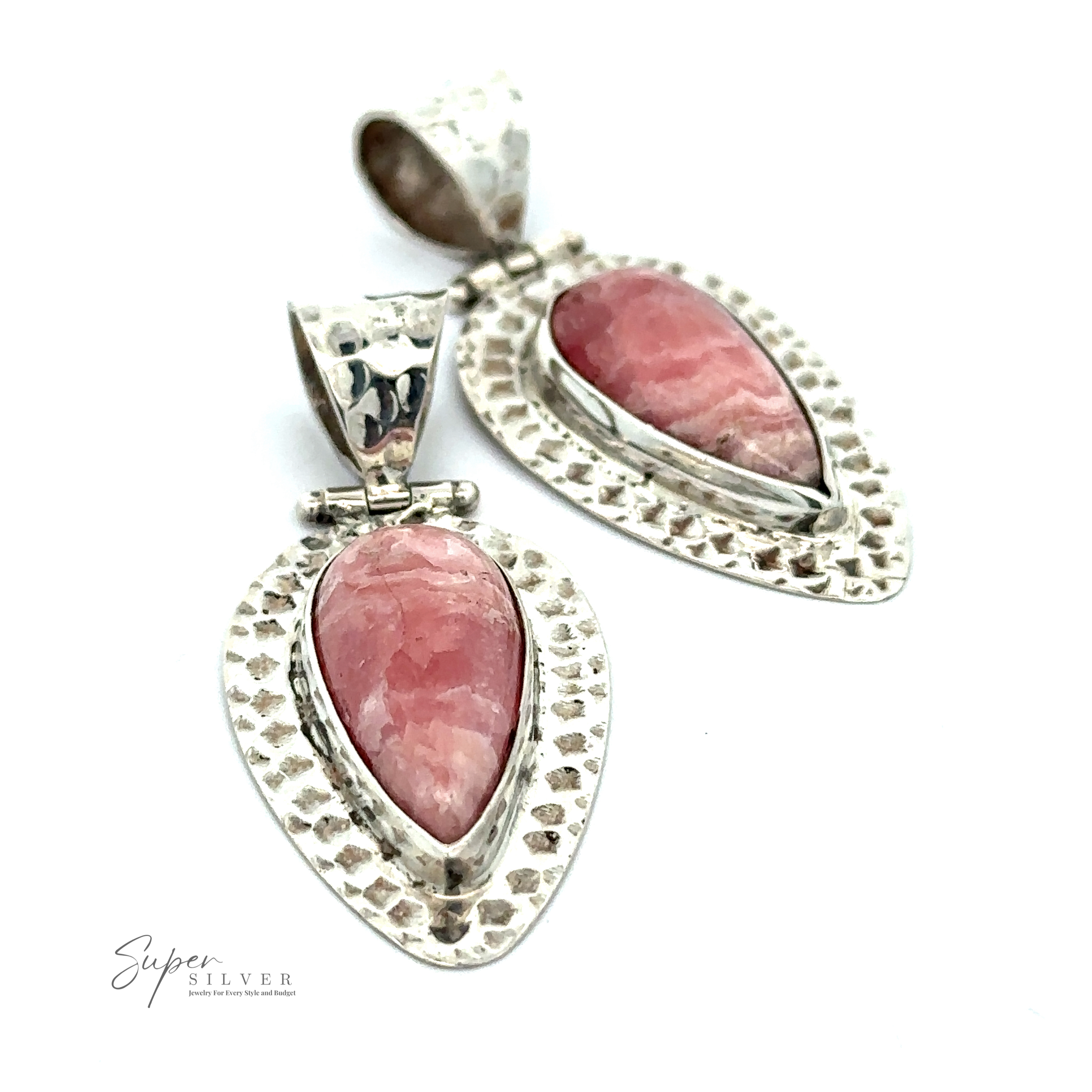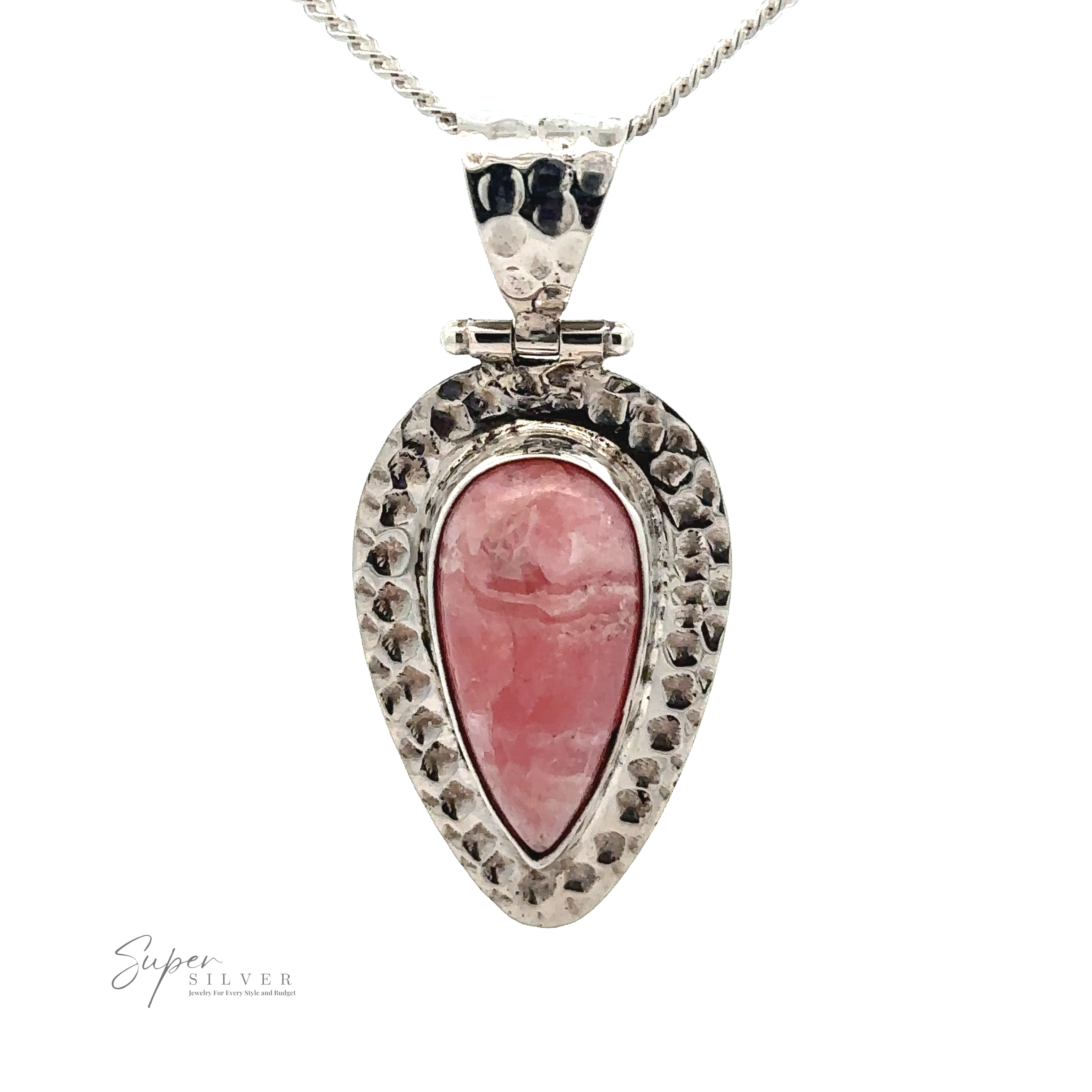 Rhodochrosite Hammered Teardrop Pendant