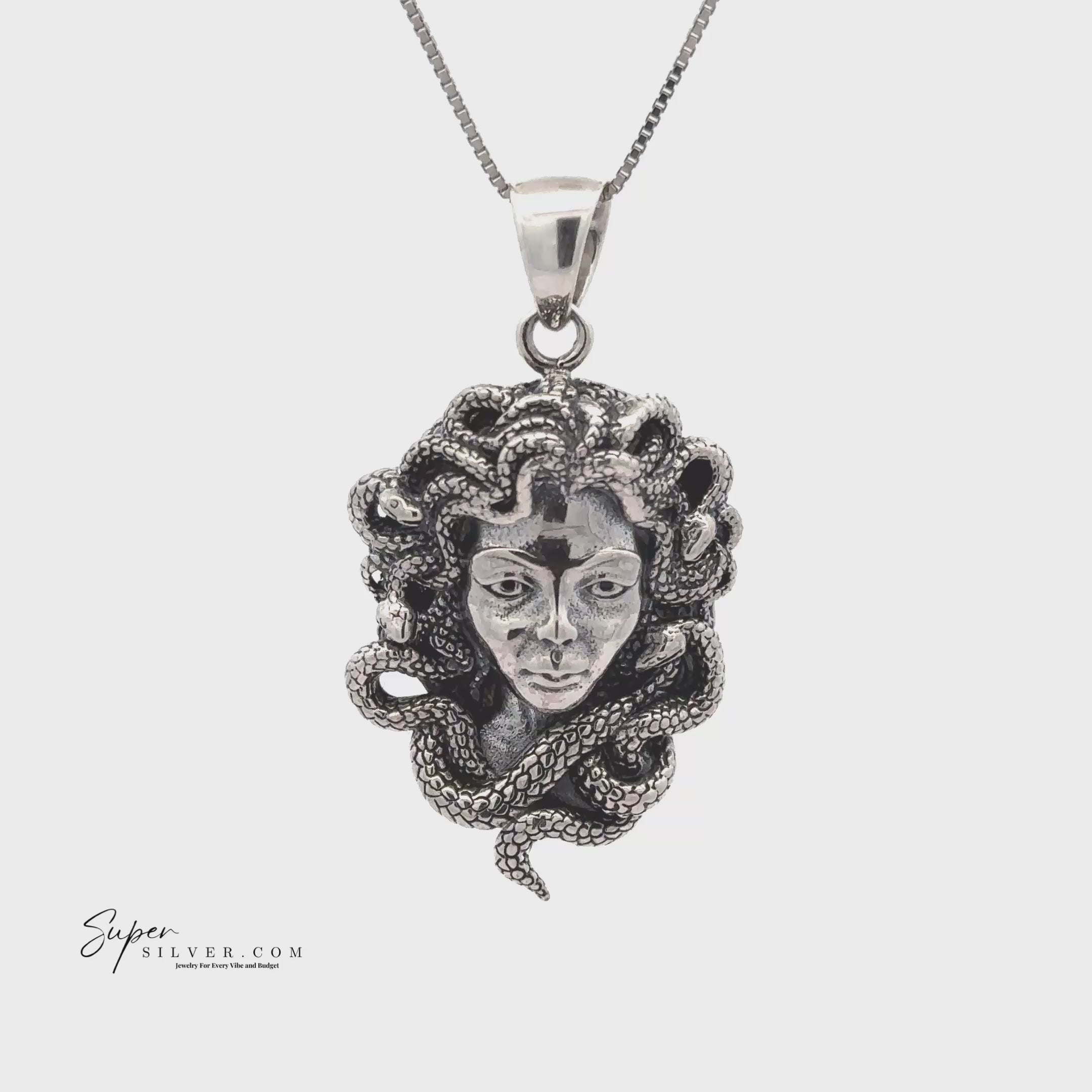 Silent but potent, this Medusa pendant exudes eerie calm and quiet strength. Her expression is stoic—otherworldly—while the detailed serpents that crown her head coil with mythic menace. A symbol of feminine power, misunderstood beauty, and inner protection, she’s not a monster—she’s a force.