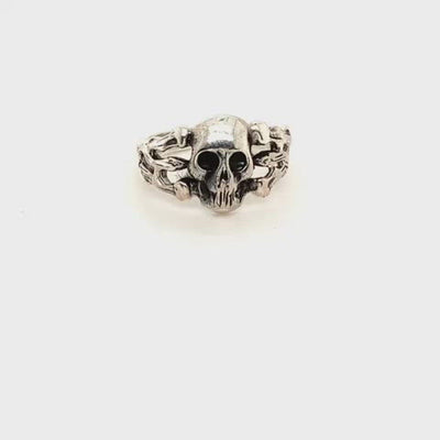 Add to your spooky collection with this simple and elegant sterling silver ring with a skull design.