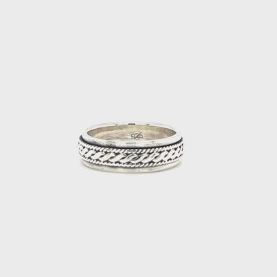 Spin your worries away with our captivating silver spinner ring, adorned with a sleek rope pattern that exudes sophistication and rustic allure. Engage your senses and find tranquility in the soothing spinning motion, making this ring not only a stylish accessory but also a remarkable fidgeting companion during moments of relaxation or contemplation. The intricate rope design adds a touch of free-spirited elegance while offering a tactile experience that delights the senses.