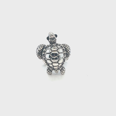 Embrace tranquility with this resplendent turtle ring! This ring is handcrafted by one of our treasured artisan collections, a mesmerizing and commanding jewelry line that never disappoints. Turtles are a timeless embodiment of serenity and grace, and this elaborately detailed ring captures the essence of these wise creatures perfectly. So whether you're an ocean connoisseur or simply adore sea turtles, this ring is an ideal statement piece for any ocean-themed collection.