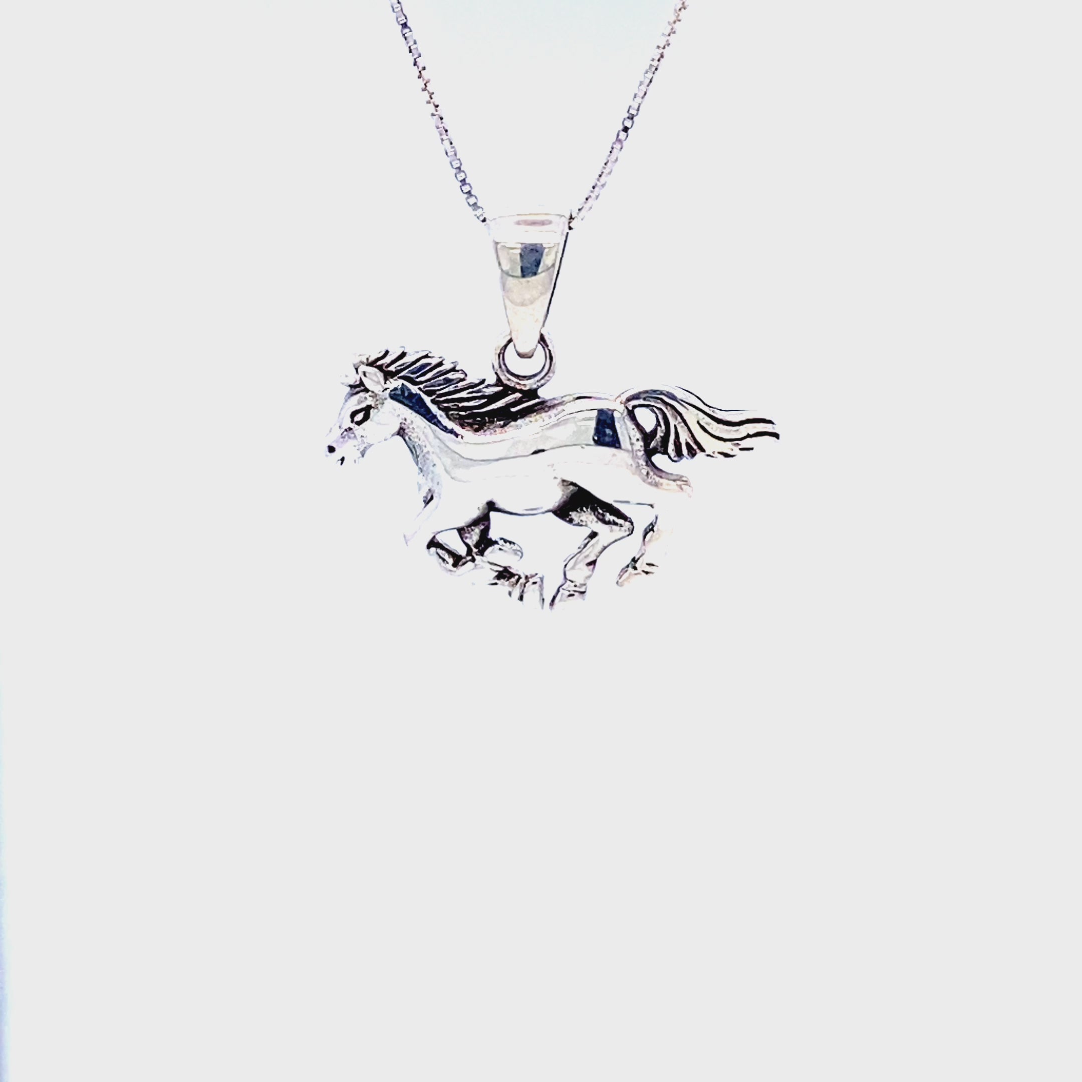 A charming horse pendant beautifully depicts this magnificent animal running free. Smaller in size, but not too small, so it's the perfect charm to wear while riding!