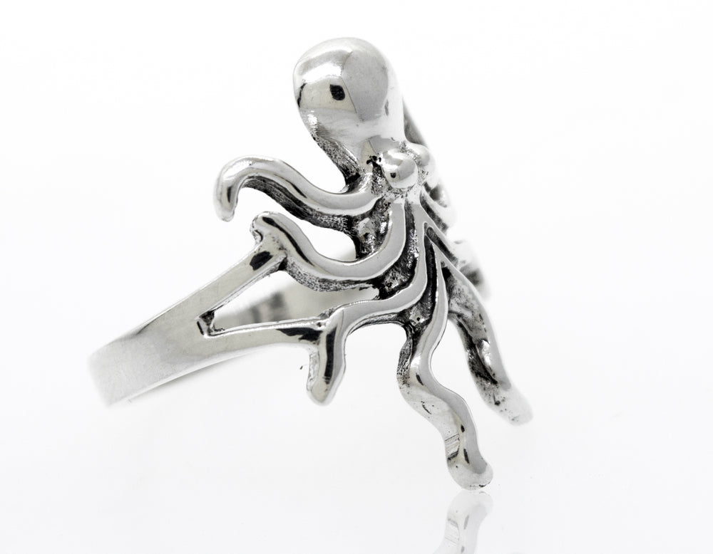 Elegant sterling silver octopus ring.