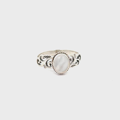 Oval Inlaid Ring with Swirls and Leaf Detailing