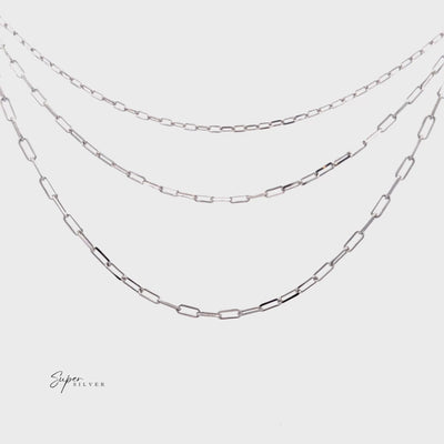 Layered. Luxe. Unapologetically chic. This triple-strand necklace features three bold paper clip chains in varying sizes, perfectly stacked for a look that’s both edgy and elegant. Crafted in Italian silver and finished in radiant rhodium, it’s a masterclass in modern style. Eye-catching yet refined, this piece brings instant polish to any outfit—no effort required. Slip it on and let the compliments roll in.